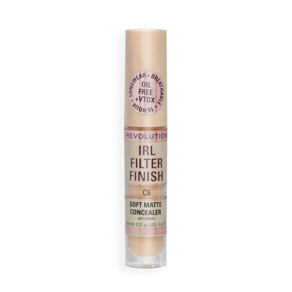 The Revolution IRL Filter Concealer provides instant, unreal results, matching the bestselling IRL Filter Foundation. This ultrabuildable, full coverage concealer is formulated to filter out blemishes, dark circles, and fine lines for up to 16 hours of comfortable wear.
