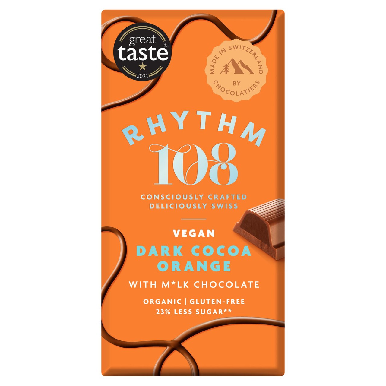 The shell of our Dark Cocoa Orange Bar is made with our signature creamy Swiss vegan chocolate, while the smooth dark cocoa and orange filling is devilishly fragrant and melts in the mouth; Like all of our bars, we believe they deliver the indulgence factor without the compromise. At 100g, these are larger than your average bar providing an opportunity to share, or a luxury treat for one! Suitable for Vegetarians and Vegans Organic, Gluten-Free, Made without Palm Oil, No Refined Sugar, 23% Less Sugar (than comparable products in the market), Wrapped in 100% Recyclable Paper and Foil