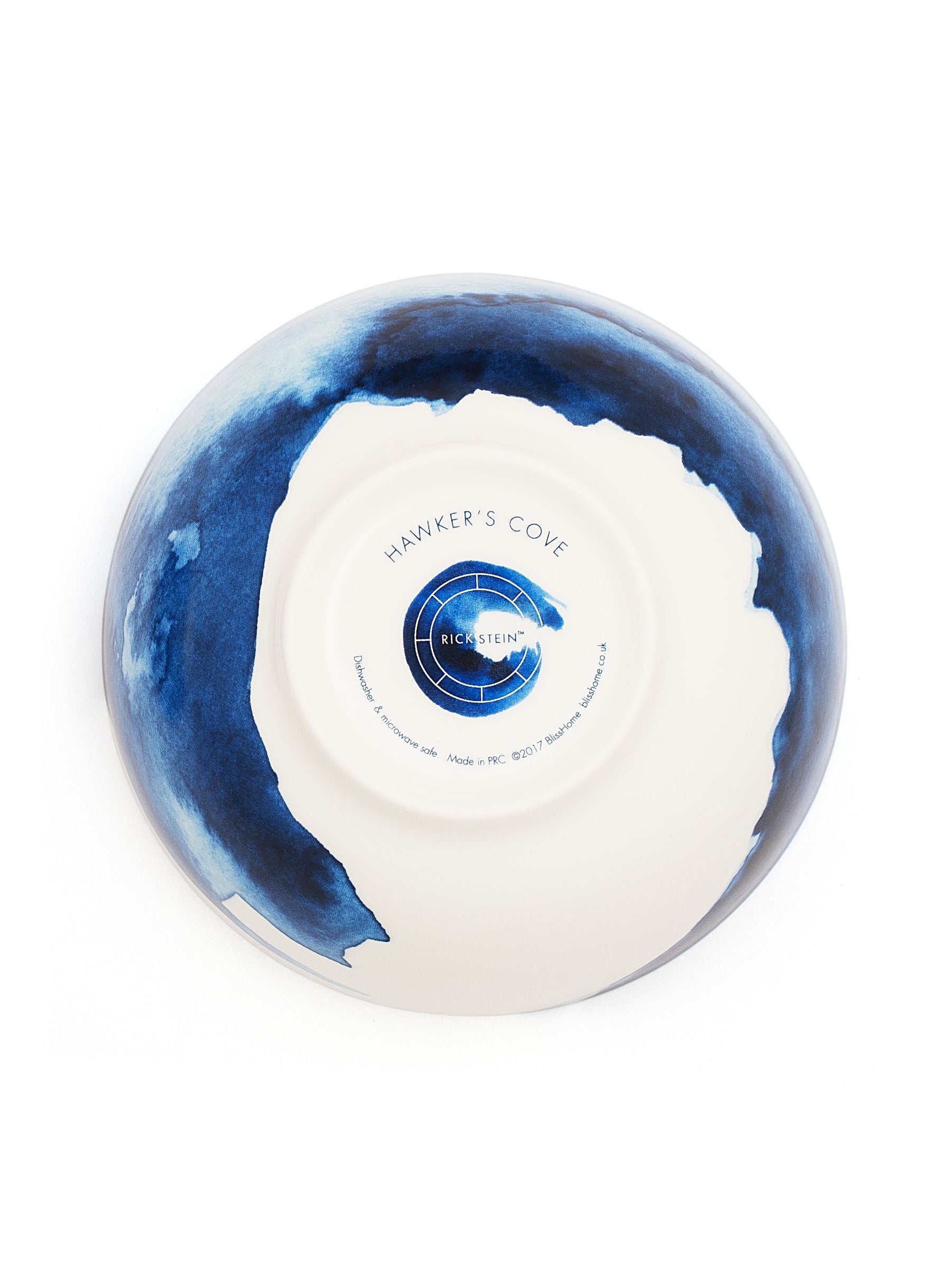 Inspired by the land & seascape of north Cornwall this beautiful collection of tableware was the winning entry in a competition Rick Stein launched to final year Art & Design students at Falmouth University to create this timeless, classic collection. This gift boxed set of four pasta bowls feature Treyarnon Bay, Harlyn Bay, Hawkers Cove and Porthilly Cove, Cornwall. The clean design of the bone china form compliments the subtly changing shades of each bay, with vivid sea blue tones. H7.5cm x D16cm. Dishwasher, freezer and microwave safe.