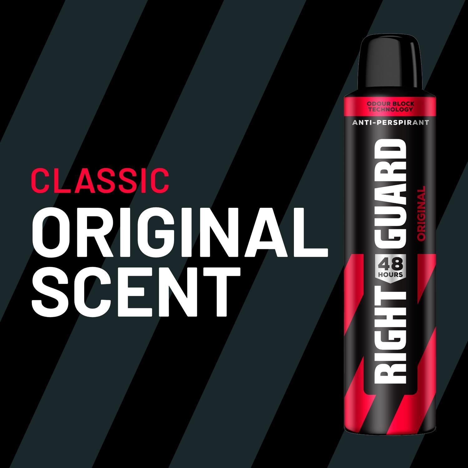 You don't give up, and neither should your antiperspirant and deodorant. That’s why we built Right Guard. It's built for hard work with our Odour Block Technology. With 48-hour sweat and odour control, you can focus on tackling one task after another and still smell fresh. Just spray and go with our classic Original Scent for men. Alcohol-free and dermatologically tested, it's gentle on skin while supporting you to smell fresh, stay dry, and feel cool, clean and confident for up to 48 hours.