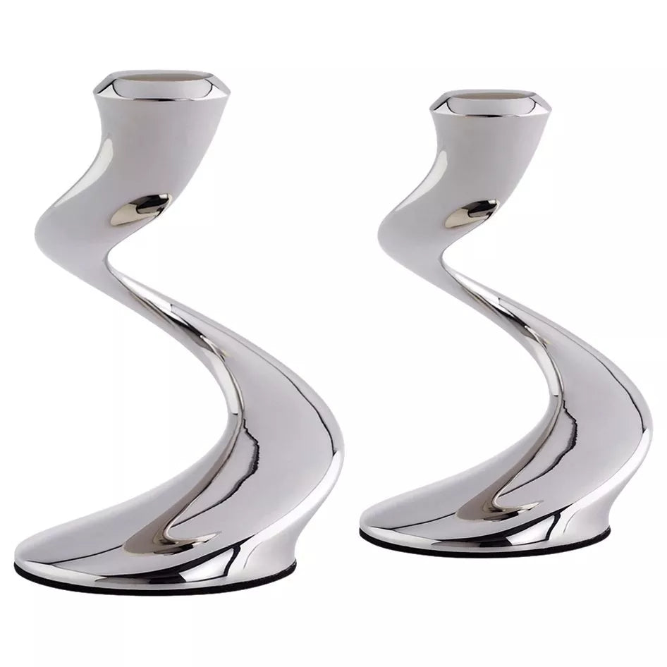The graceful flowing form of the Robert Welch Windrush candlesticks makes a real sculptural statement.