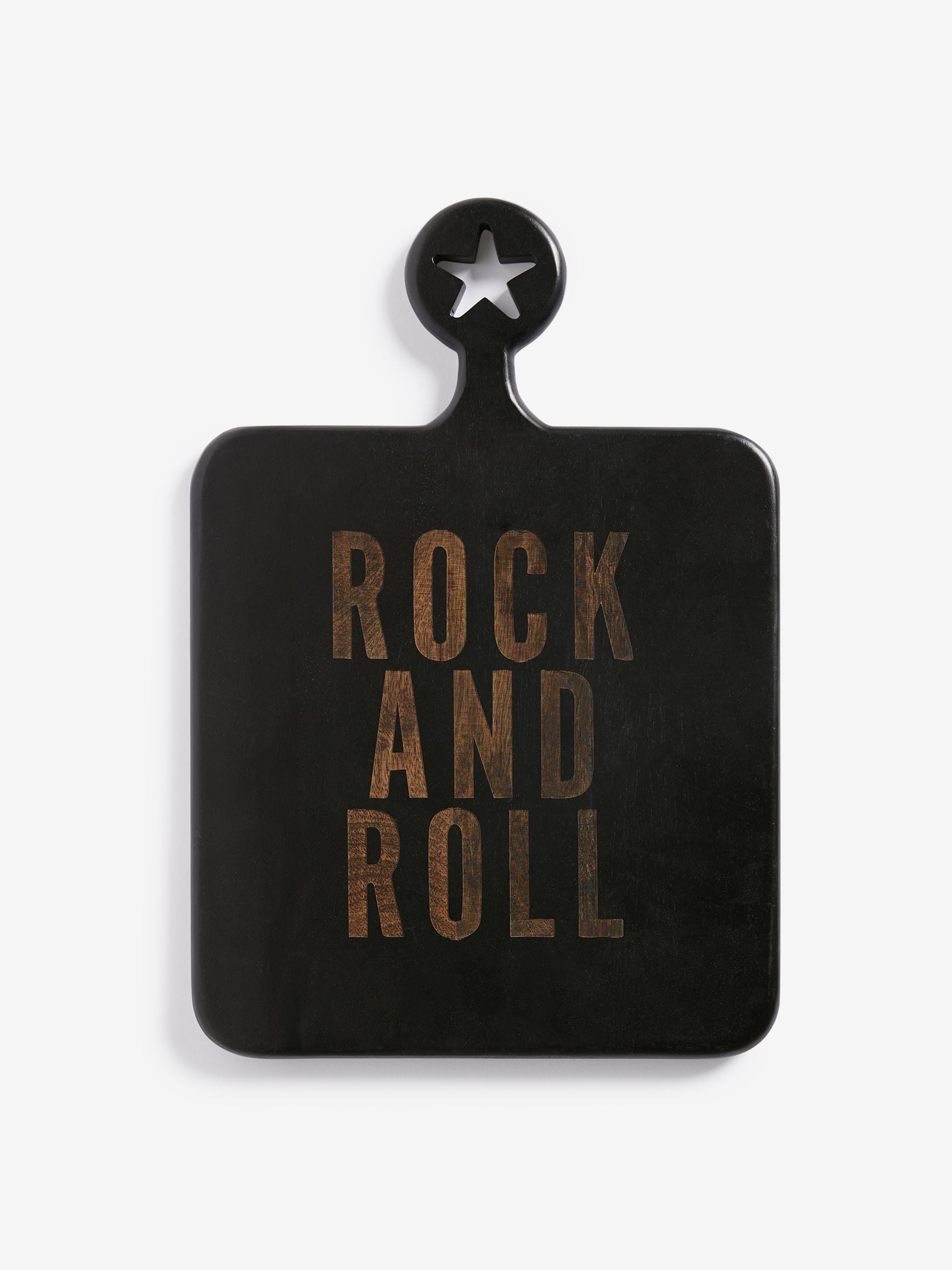 Score some serious hosting points with the the Black Large Serve Board from Rockett St George. Designed in the perfect size for serving up all kinds of indulgent treats, this solid wood serving board is spruced up with a fun slogan saying that reads 'Rock And Roll'. From charcuterie to cheese boards, skewers to sweet snacks, this fabulous board is the perfect platform to present all your kitchen creations.