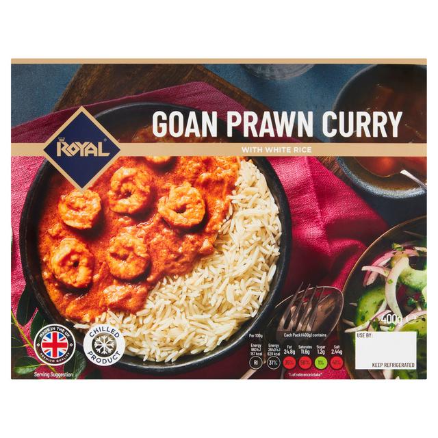 This premium quality ready meal features an authentic Goan prawn curry paired with fluffy Basmati white rice. The convenience of a pre-portioned 400g meal allows for quick nutrition without compromising on flavour or quality standards.