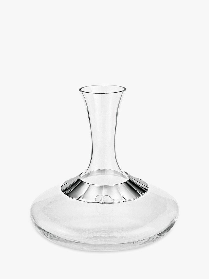 Elegantly designed with sleek lines, it's made from handcrafted glass with a fluted pewter band encircling the base of the neck. The long and straight neck and large, rounded base is ideal for aerating the wine, allowing it to breathe at rest, and releasing the beautiful aromas.
