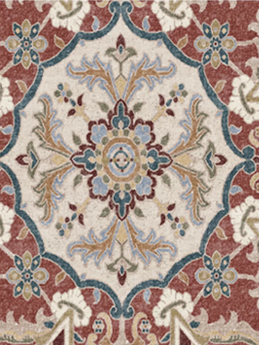 The Mahlileh Heriz Opal highlights a prominent central medallion with a subtle border and corner pattern.