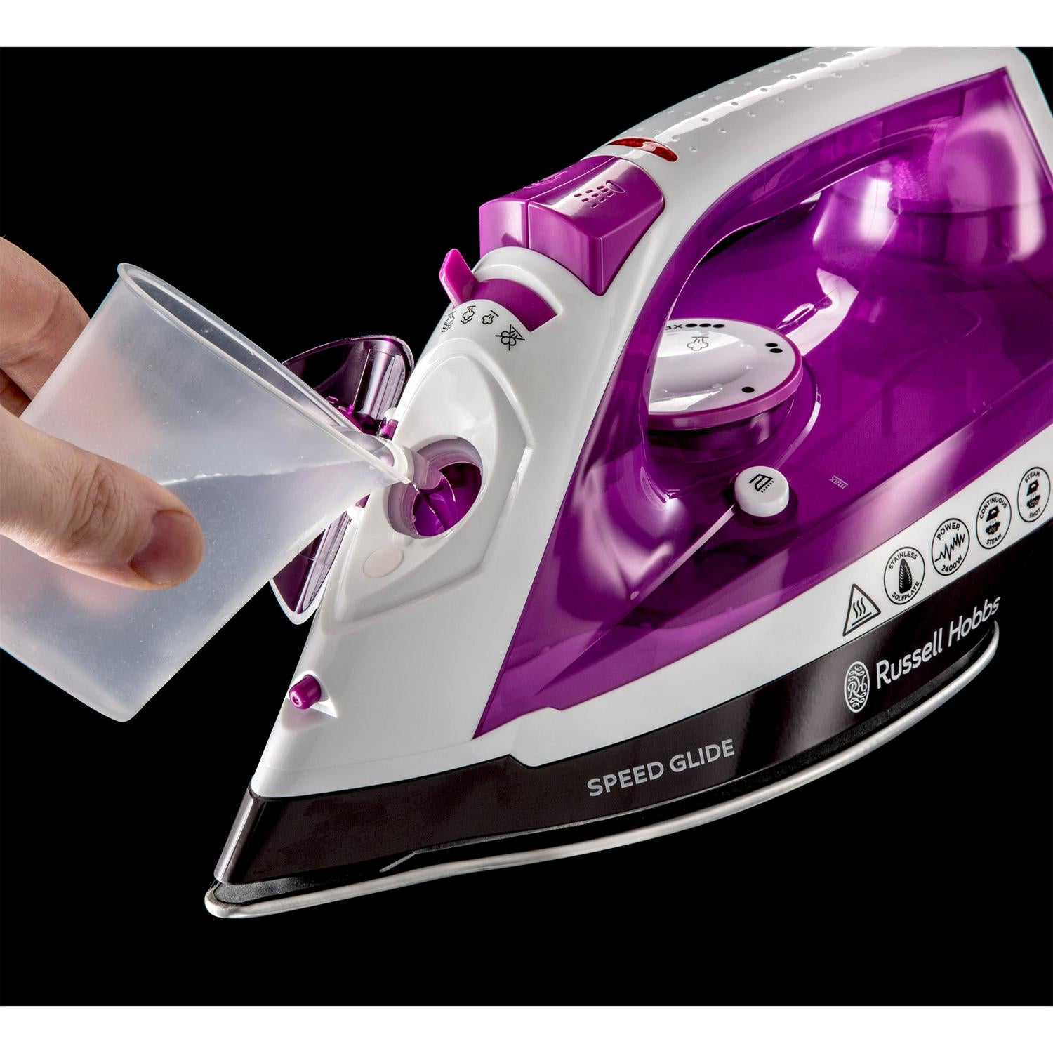 This Russell Hobbs Speedglide Iron is engineered to make tackling large laundry piles a quicker process. The appliance combines a durable stainless steel soleplate with significant steam power for easier fabric management. It is specifically designed to ensure faster, less demanding ironing sessions for all users.