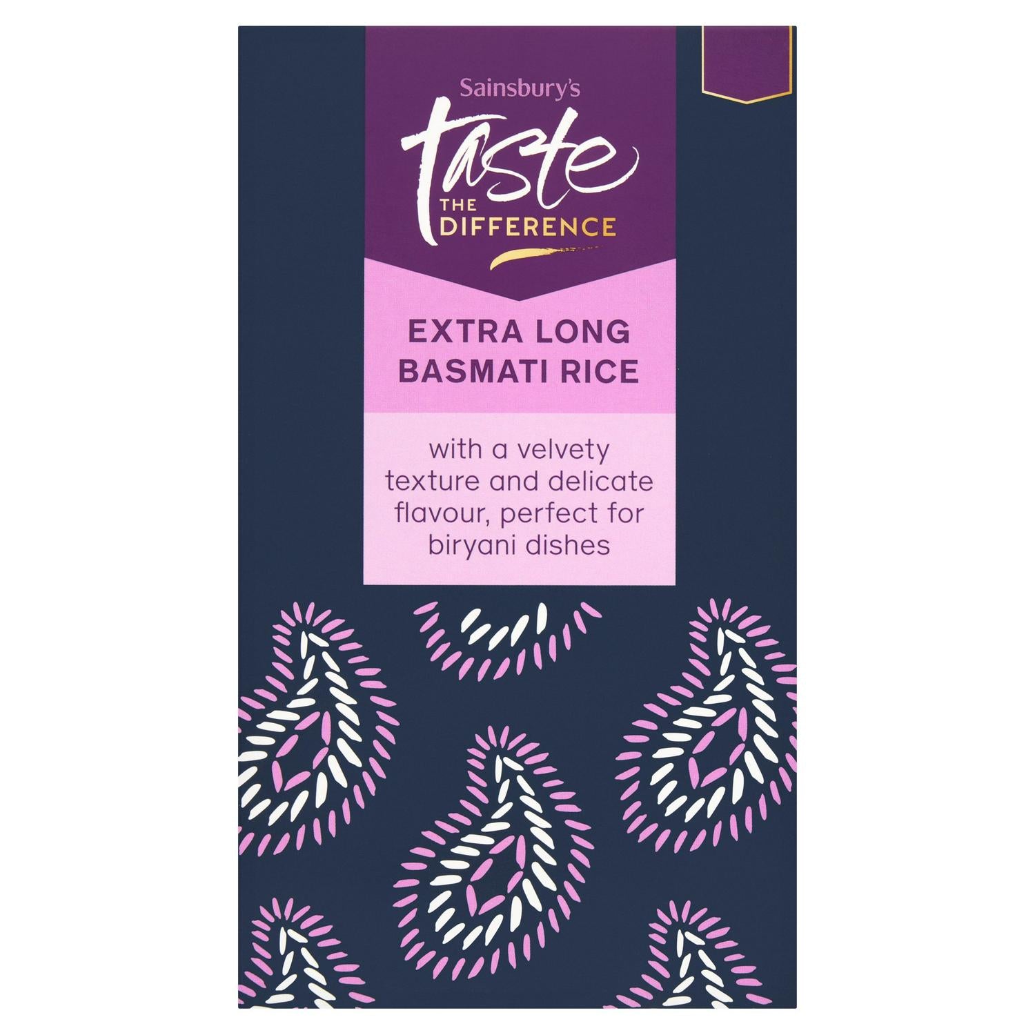 This Sainsbury's Taste the Difference selection provides premium extra long basmati rice in a 500g pack. It is recognised for its inherently delicate flavour profile and smooth, velvety quality. This specific basmati rice cooks up beautifully, offering a refined texture for discerning home cooks.