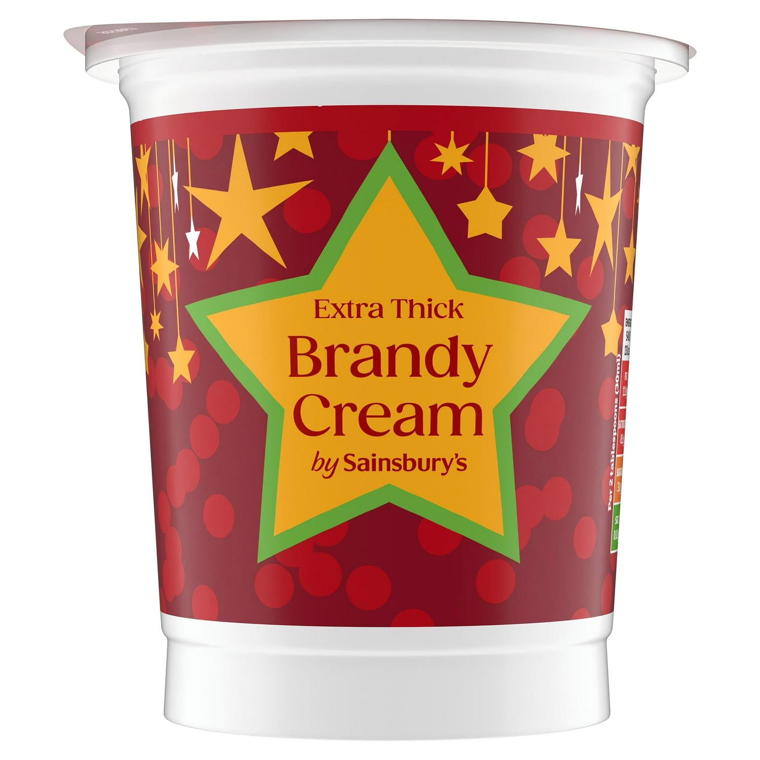 This Sainsbury's product is a sweetened, pasteurised extra thick double cream enriched with authentic French brandy. It provides a rich, traditional flavour profile perfect for complementing your favourite festive desserts. The 500ml pot ensures you have ample supply for gatherings.