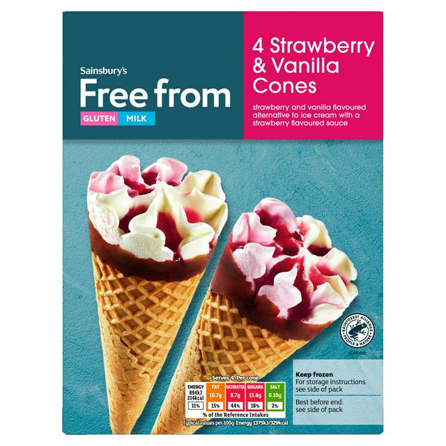 Sainsburys Free From Strawberry Vanilla Cones 4 x 120ml