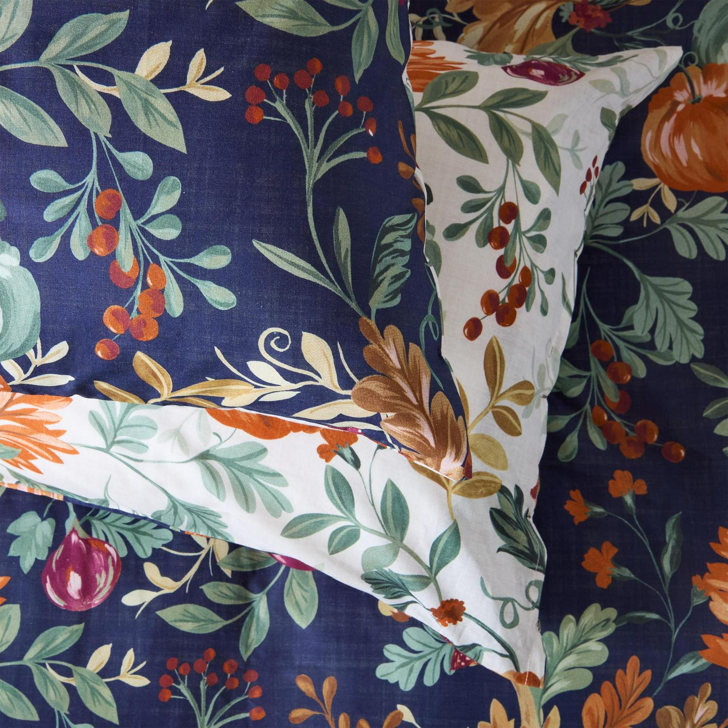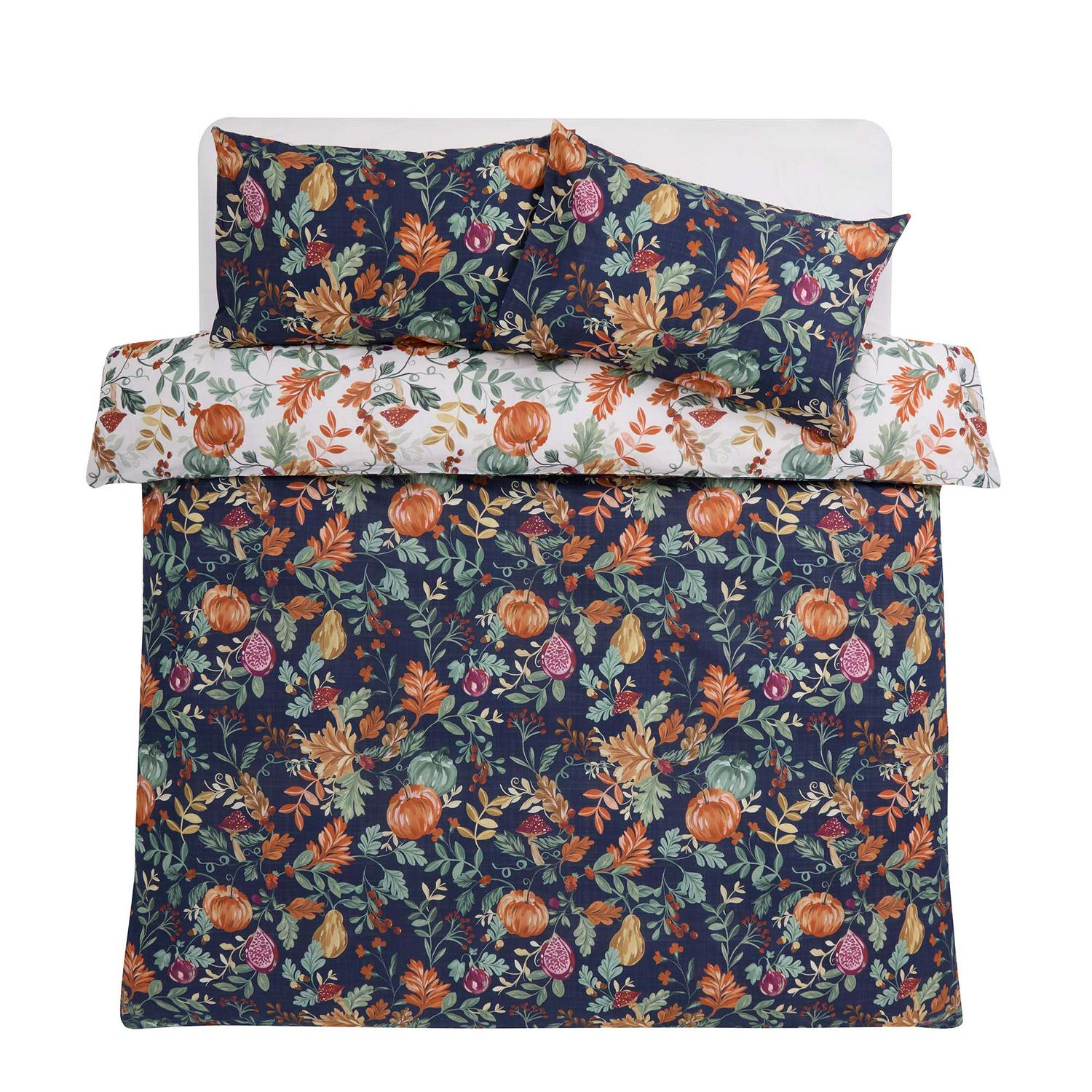 Read MoreSnuggle into the delights of autumn. Decorated with seasonal foliage against a deep blue background, this bedding set makes a striking statement. Want a lighter look? Just flip it over. With a breathable percale finish, it’s perfect for staying warm as the nights get colder.