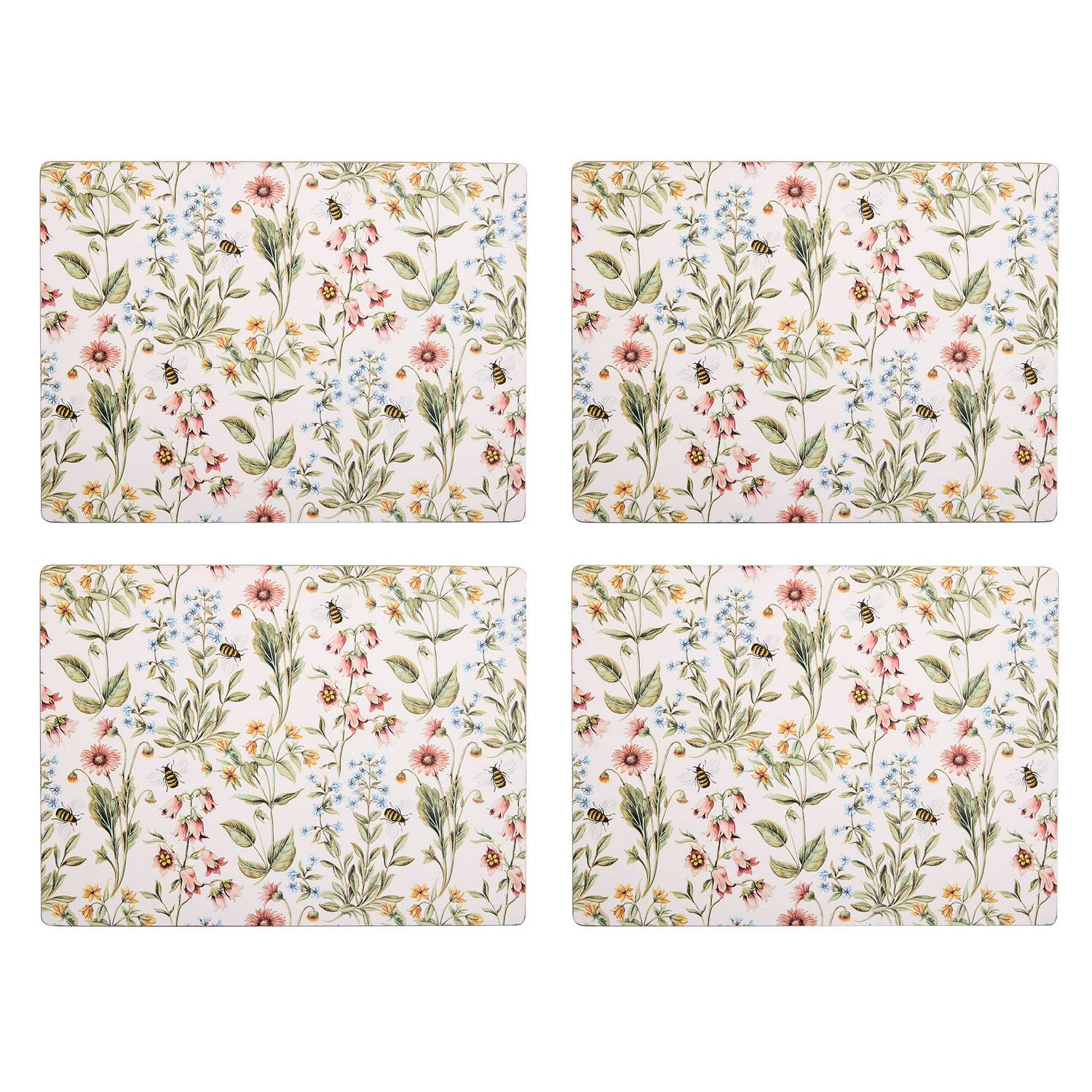 Read MorePretty. Protective. Placemats. Colourful wildflowers buzzing with detail give this set of 4 placemats a country fresh feel. Decorative and practical. Each surface is wipe clean and heat-resistant, and underneath the non-slip cork base is kind to your table.