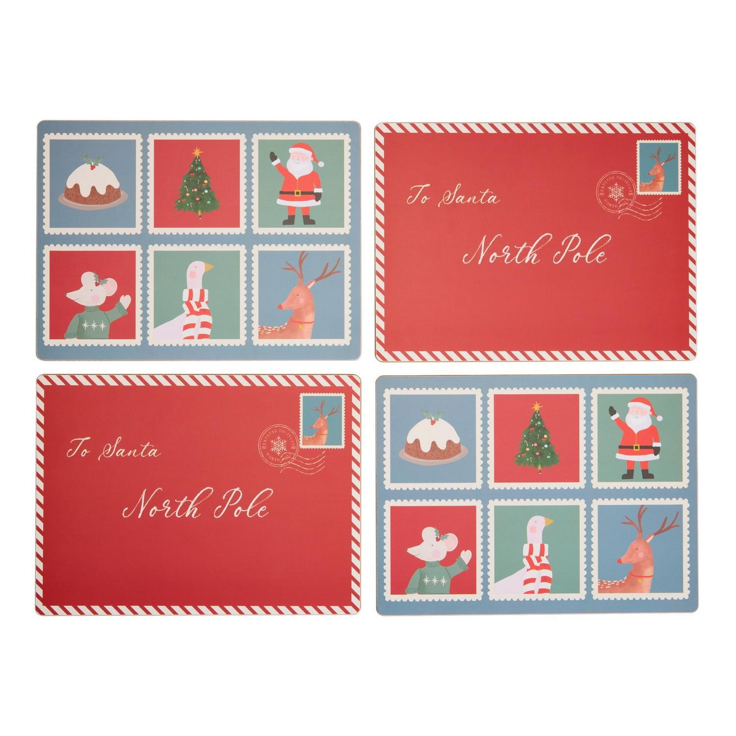 Read MoreWelcome this cheerful 4-person placemat set to your Christmas table. Designed for festive table scaping, they’re non-slip and heat resistant to 90 degrees with a cork base and wipe-clean surface.