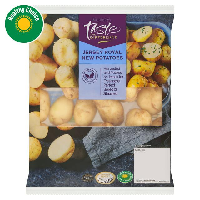 Experience the distinct, earthy flavour of Sainsbury's Taste the Difference Jersey Royal New Potatoes, presented in this 1kg pack. Harvested and packed immediately on Jersey, these excellent new potatoes guarantee superior quality. They are perfectly suited for simple steaming or boiling preparations, offering a truly seasonal treat.