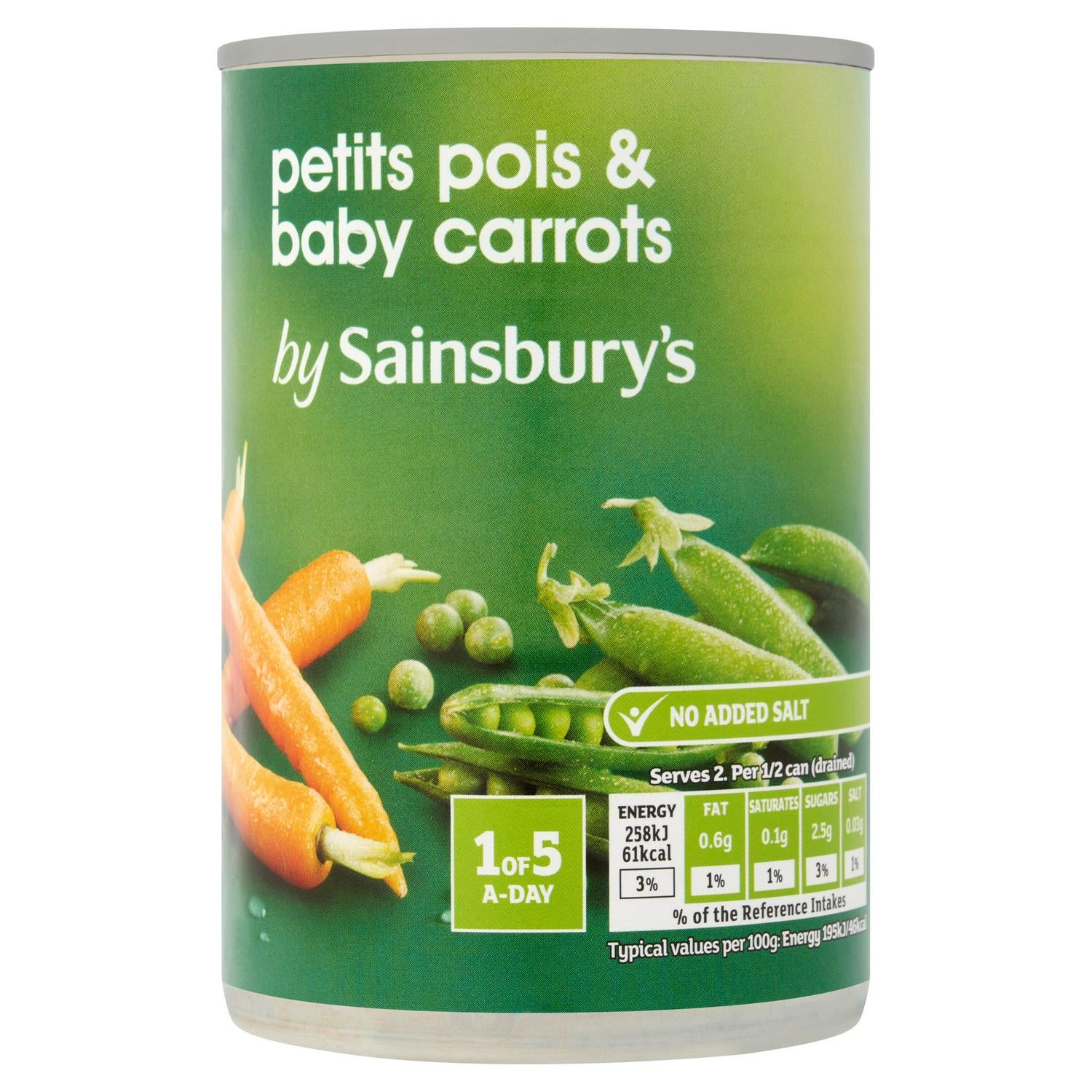 Sainsbury's Petits Pois & Baby Carrots provide a convenient way to include important nutrients in your daily meals. These tender peas and small carrots are preserved simply in water, ready for immediate incorporation into your favourite dishes.