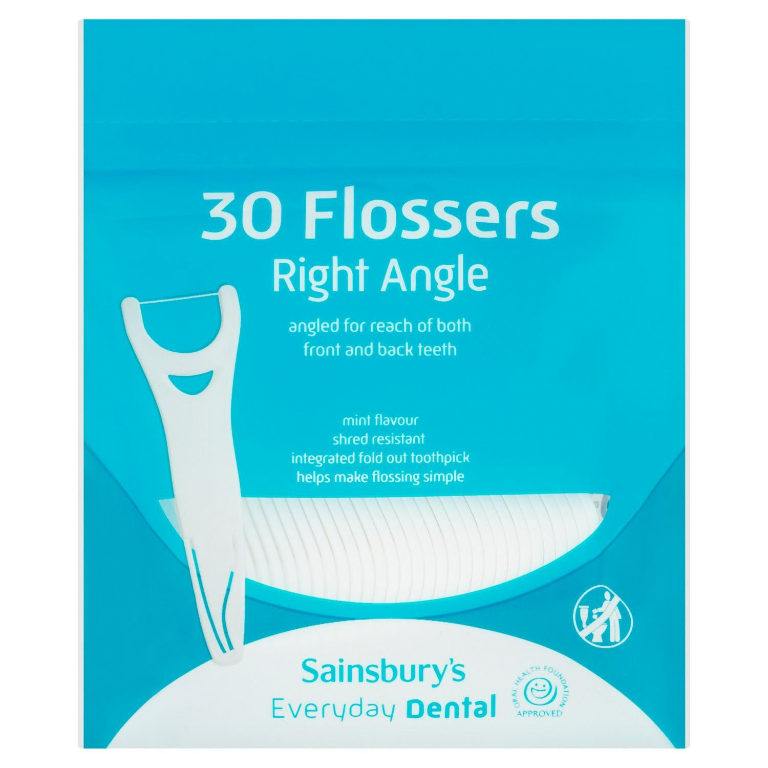 These Sainsbury's Right Angle Flossers are specifically designed to simplify your daily oral care routine. The unique right angle shape ensures easy access to both front and back teeth, including hard-to-reach areas. This pack contains 30 quality flossers intended to help make effective cleaning simple.