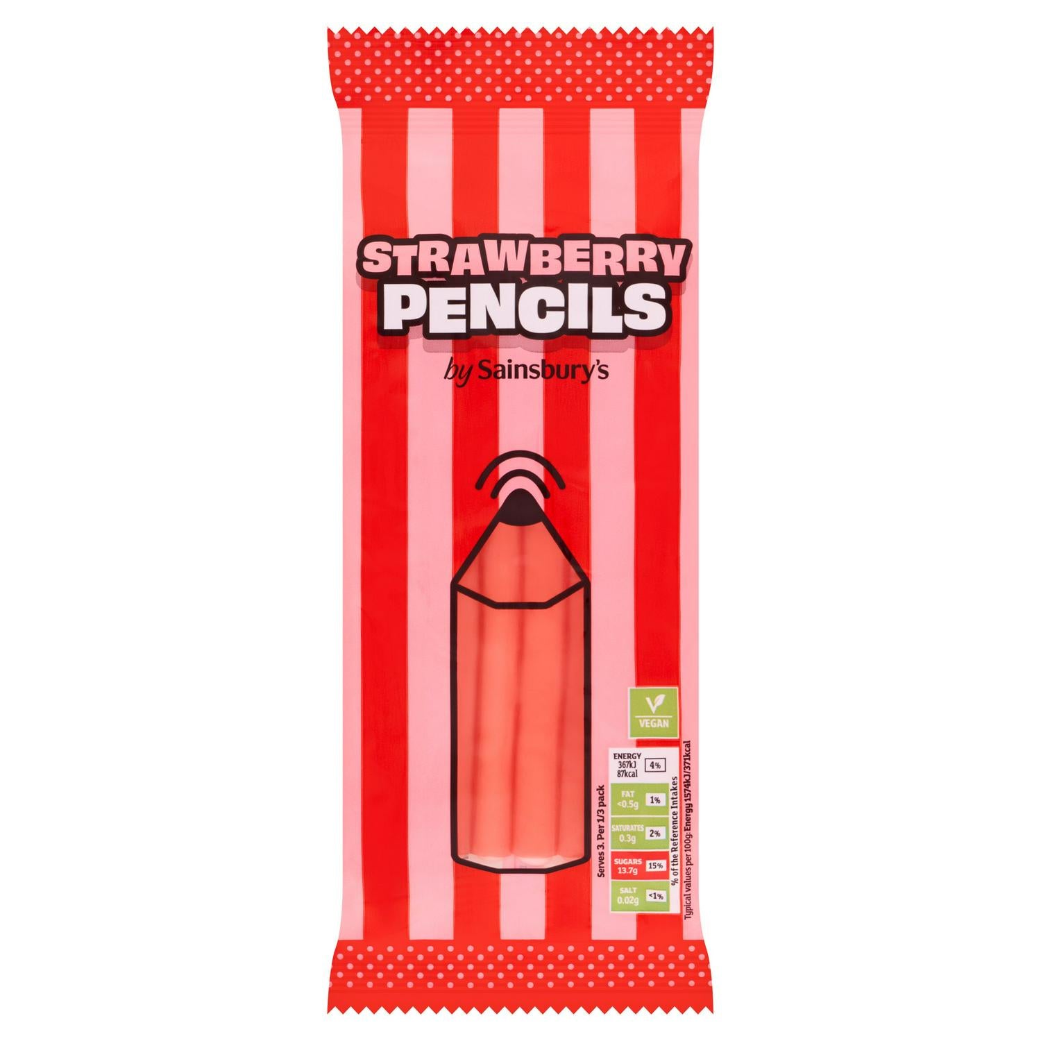 By Sainsbury's offers these classic Strawberry Pencils in a convenient 70g pack format for your personal enjoyment or small sharing moments. These jellied confectionery items deliver a distinct, bright strawberry flavour throughout each elongated piece. Importantly, this product is certified as suitable for vegans, aligning with specific plant-based dietary needs readily displayed on the packaging.