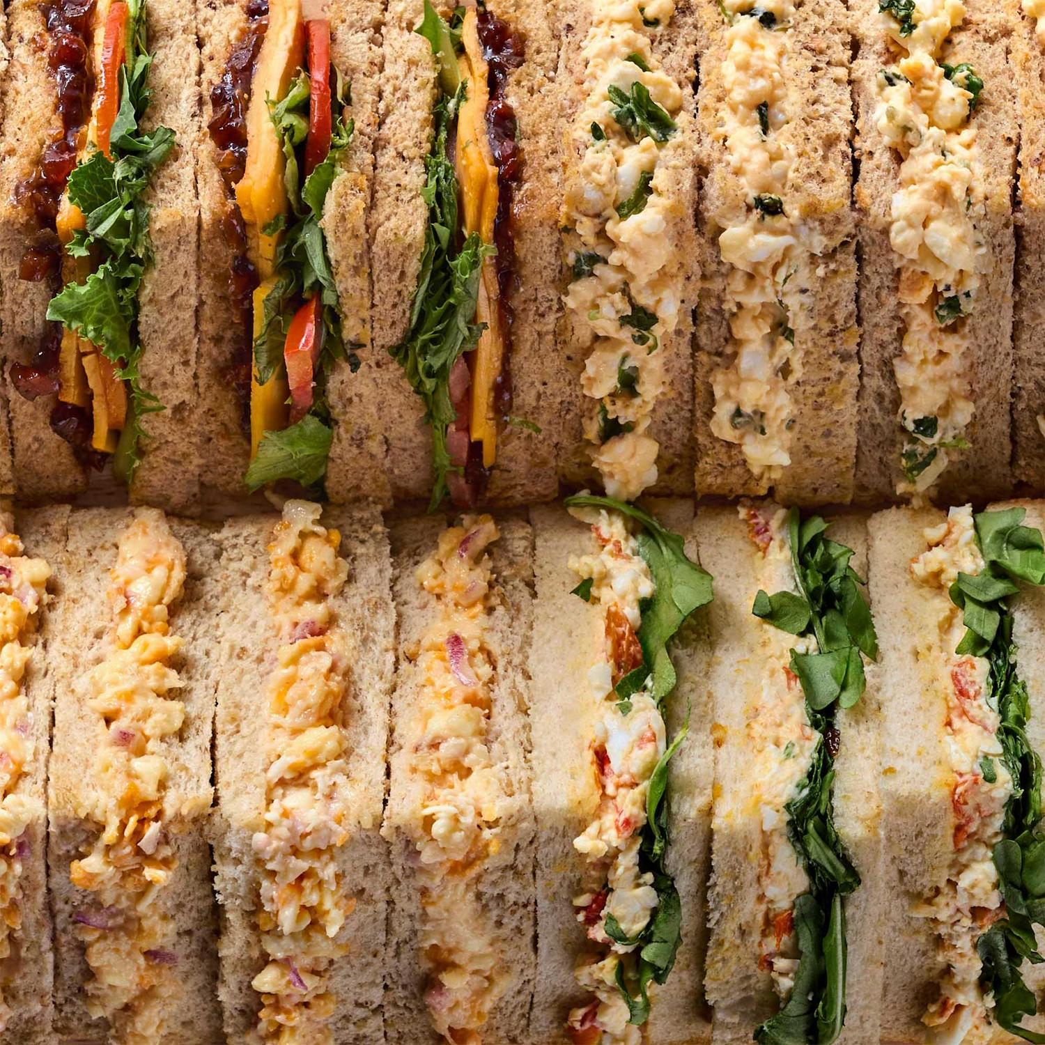 Read More20 vegetarian sandwich quarters consisting of 8 quarters of red Leicester ploughman's sandwich, 4 quarters of egg and watercress sandwich, 4 quarters of egg and slow roast tomato sandwich and 4 quarters of cheese and red onion sandwich