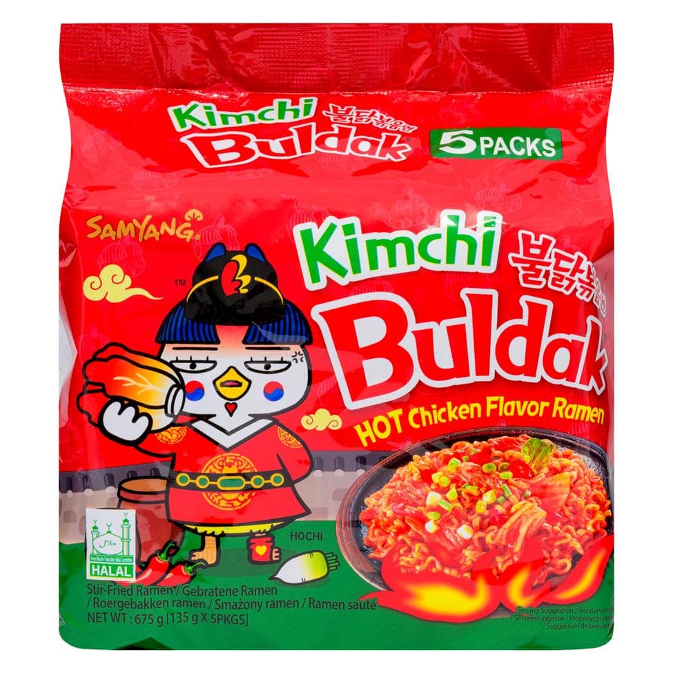 Experience the fiery kick of Samyang Buldak Hot Chicken Flavor Ramen (Kimchi) – a multipack of 5, perfect for sharing or enjoying on your own! This Korean ramen delivers an authentic taste sensation, blending intense spiciness with the tangy zest of kimchi.