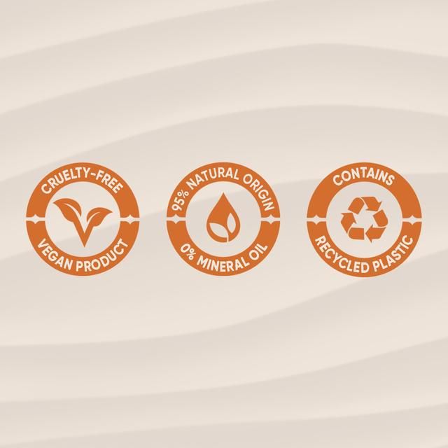 A blend of skin strengthening shea butter and moisturising vitamin E leave skin feeling soft and smelling great.