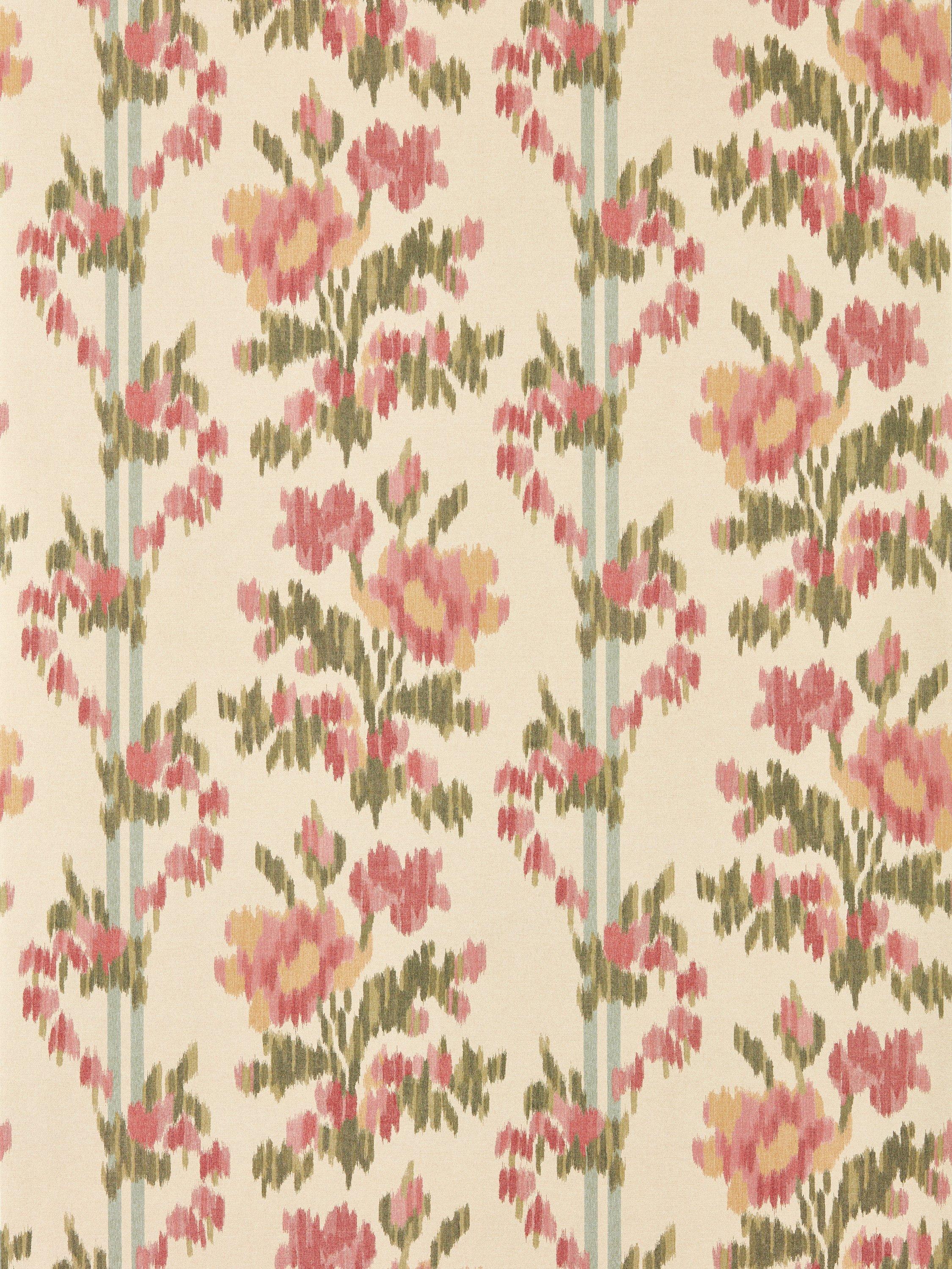 Apothecary Rose is a beautiful example of a warp-printed floral ikat where the warp yarns are printed before weaving the design. The design references the Highgrove Rose that climbs the house`s façade.