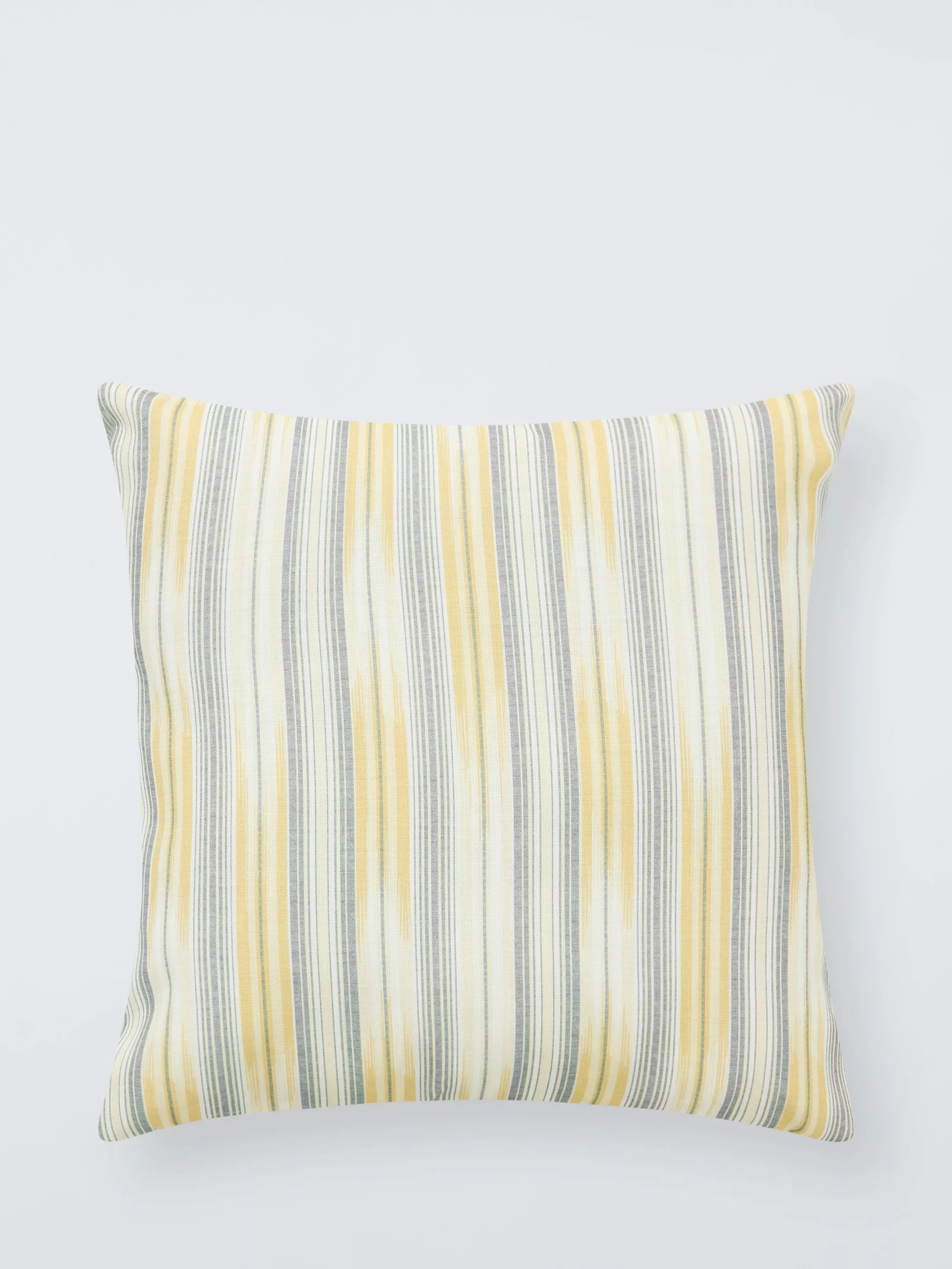 With a strie effect running through, this is wonderfully versatile mid-scale ikat-style stripe cushion.