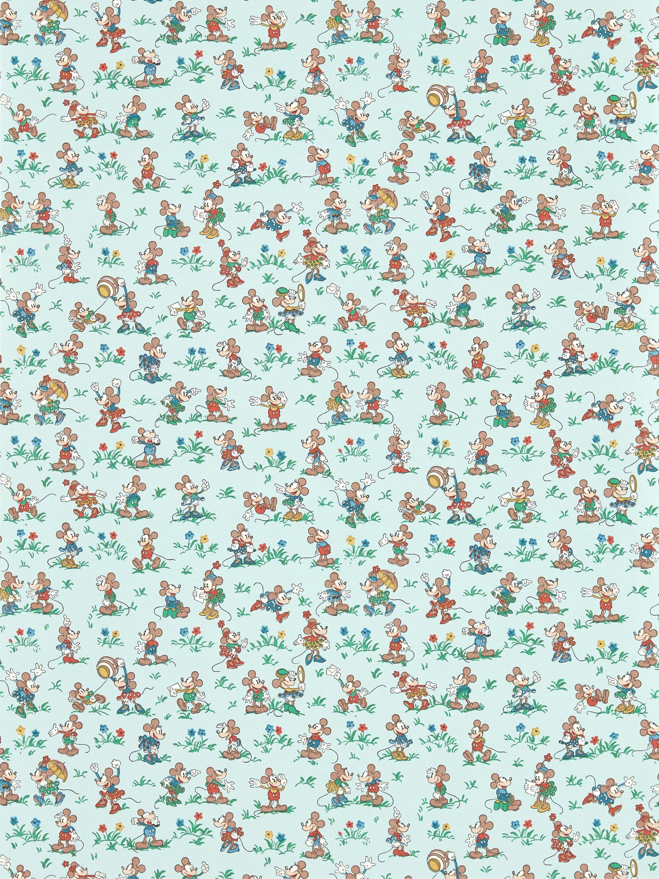 Disney`s Mickey and Minnie go adventuring across this playful 1934 Sanderson design which is produced in the same scale and colourways as the original handblock printed archive document.