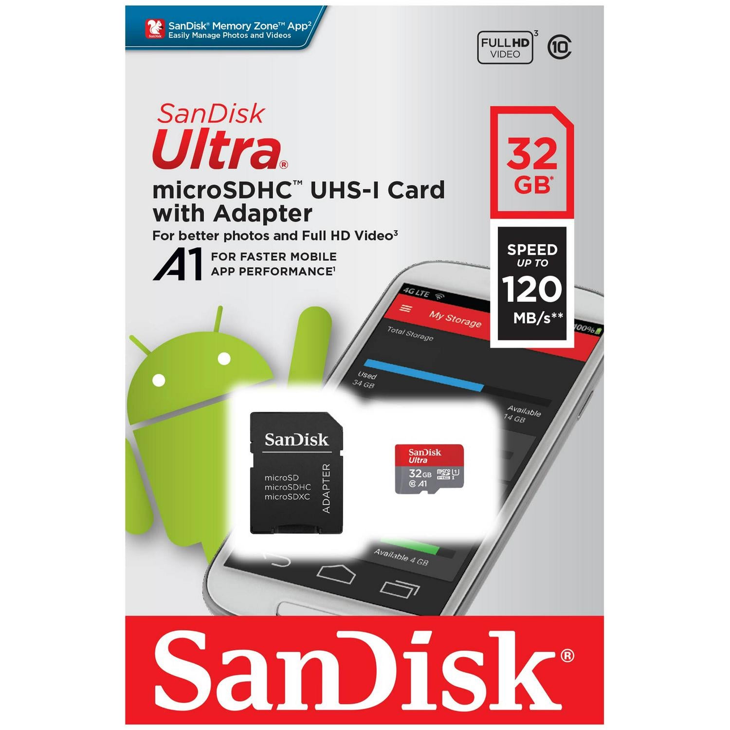 The SanDisk Ultra microSDHC card provides ample storage for your compatible devices. This card offers reliable performance for capturing and saving your digital media content efficiently.