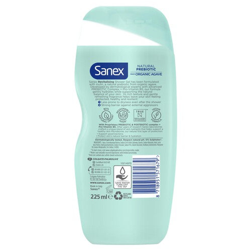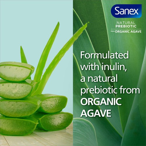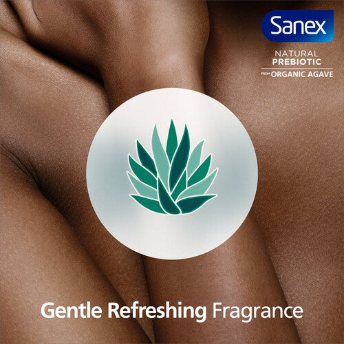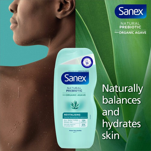 Take care of your skin to keep it strong and healthy when you wash with Sanex Organic Agave Revitalising Shower Gel., Our shower gel has a gentle refreshing fragrance you'll love., This shower gel for men and women has been developed by dermatological experts and is formulated with an advanced prebiotic complex and pro-vitamin B5 that gently hydrates your skin for 12 hours and supports its natural balance., The shower gel makes your skin feel protected, healthy and resilient, while leaving it less prone to dryness and creates a strong barrier against external aggressors., This vegan shower gel is made from ingredients of 92% natural origin* and is SLS free**. *Water and naturally sourced ingredients with limited processing. **Does not contain any sulphate-based surfactant.