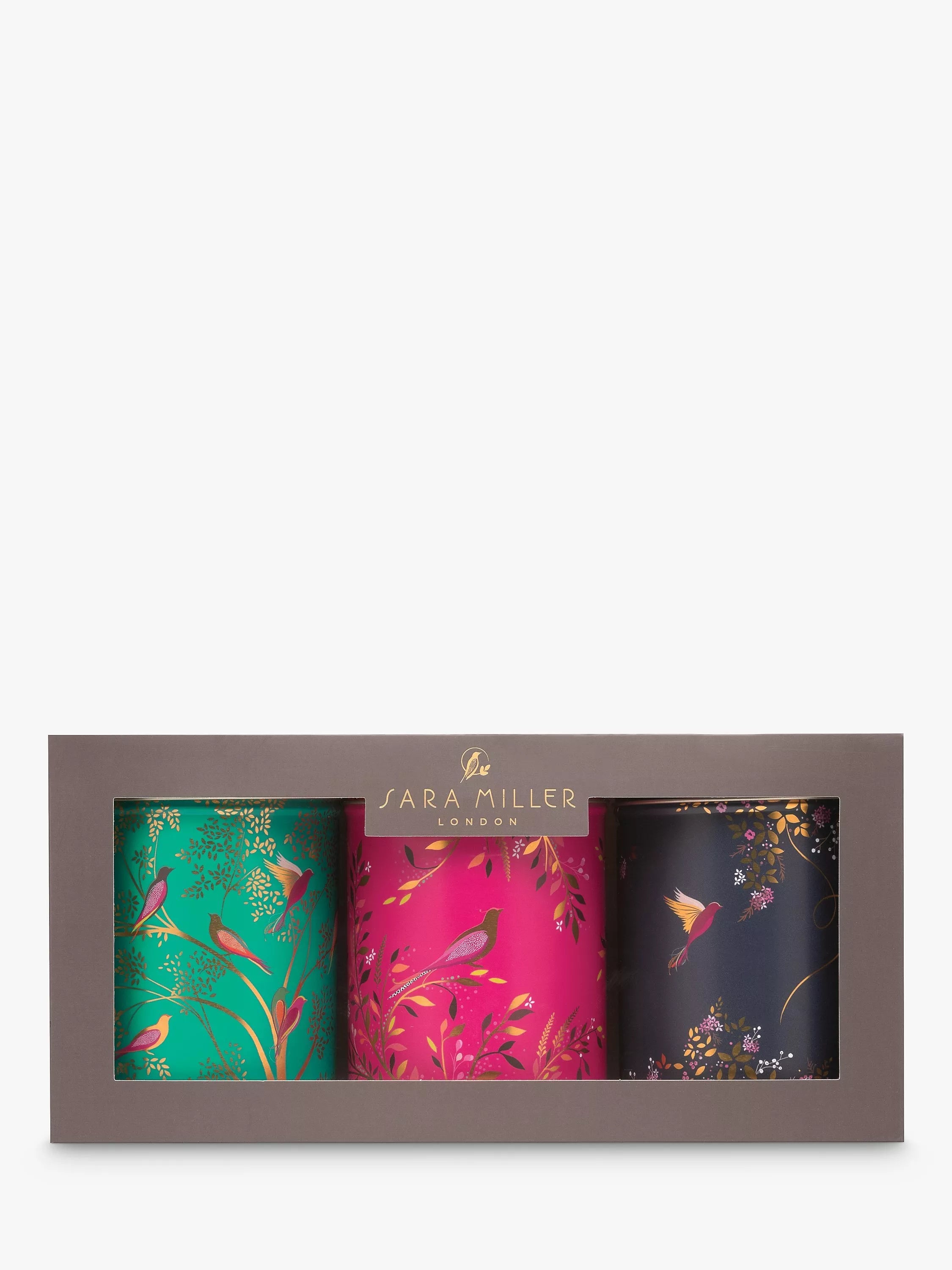 Colourful and giftable trio of printed steel kitchen storage caddies featuring three different Sara Miller designs from her Chelsea Collection. An attractive set for a shelf or countertop, they're ideal for storing tea bags, sugar and coffee.