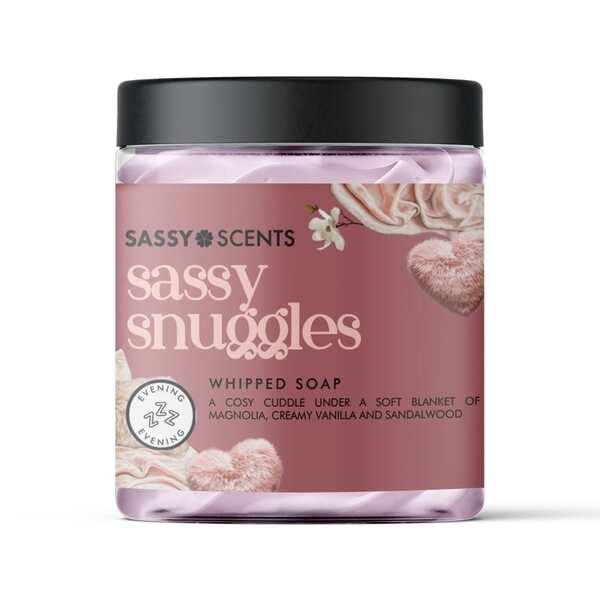 Discover the Sassy Scents Sassy Snuggles Whipped Soap, offering a uniquely luxurious texture infused with comforting aromas for your daily routine. This 115g product blends skin-conditioning elements with a delightful fragrance profile featuring magnolia, creamy vanilla, and sandalwood notes.