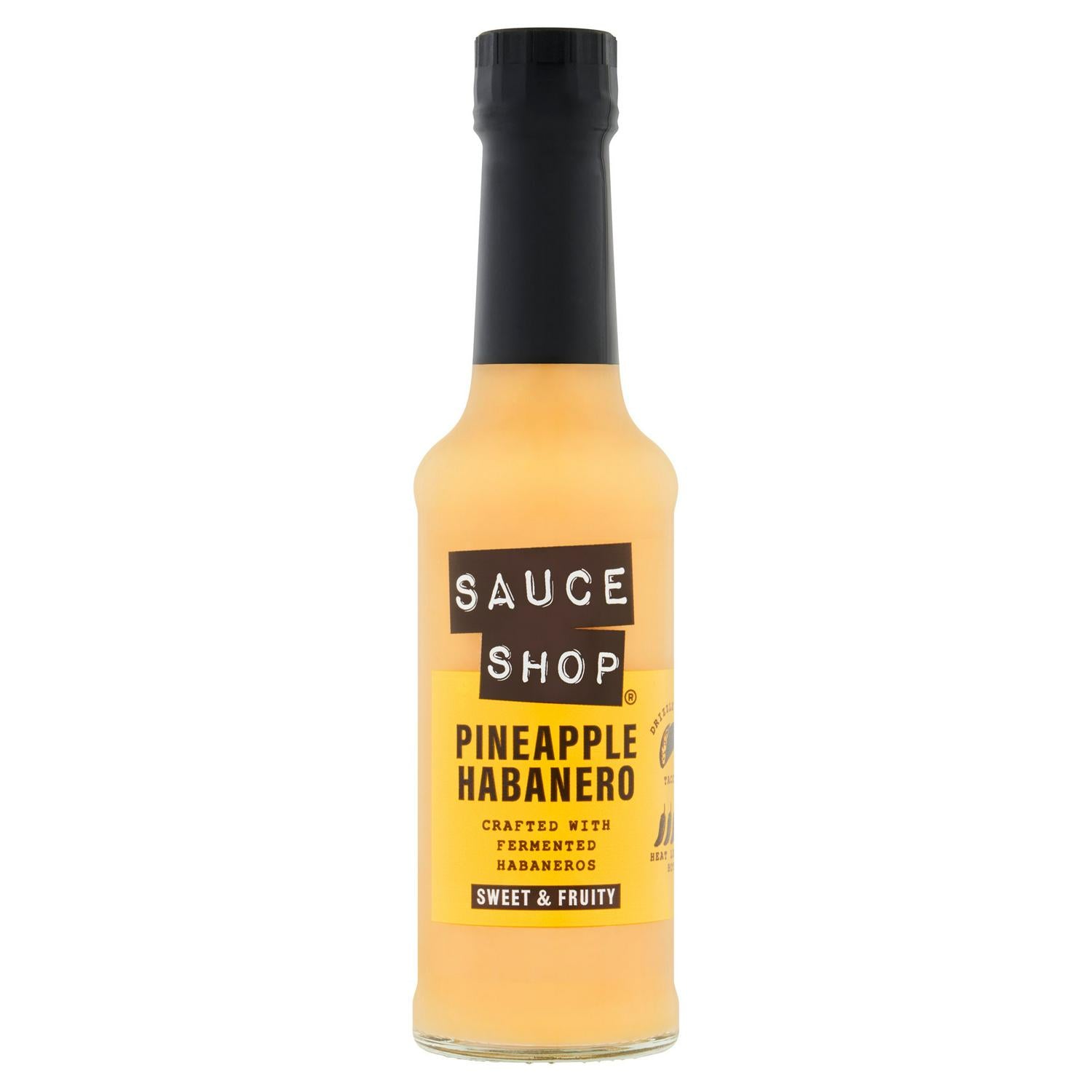 Tropical Vibes Only. A classic habanero hot sauce supercharged with heaps of juicy, fresh, fruity pineapple. It's sunshine in a bottle - just the thing for tacos, salads or as a glaze for chicken and fish. Crafted with fermented habaneros for full-on fiery flavour.