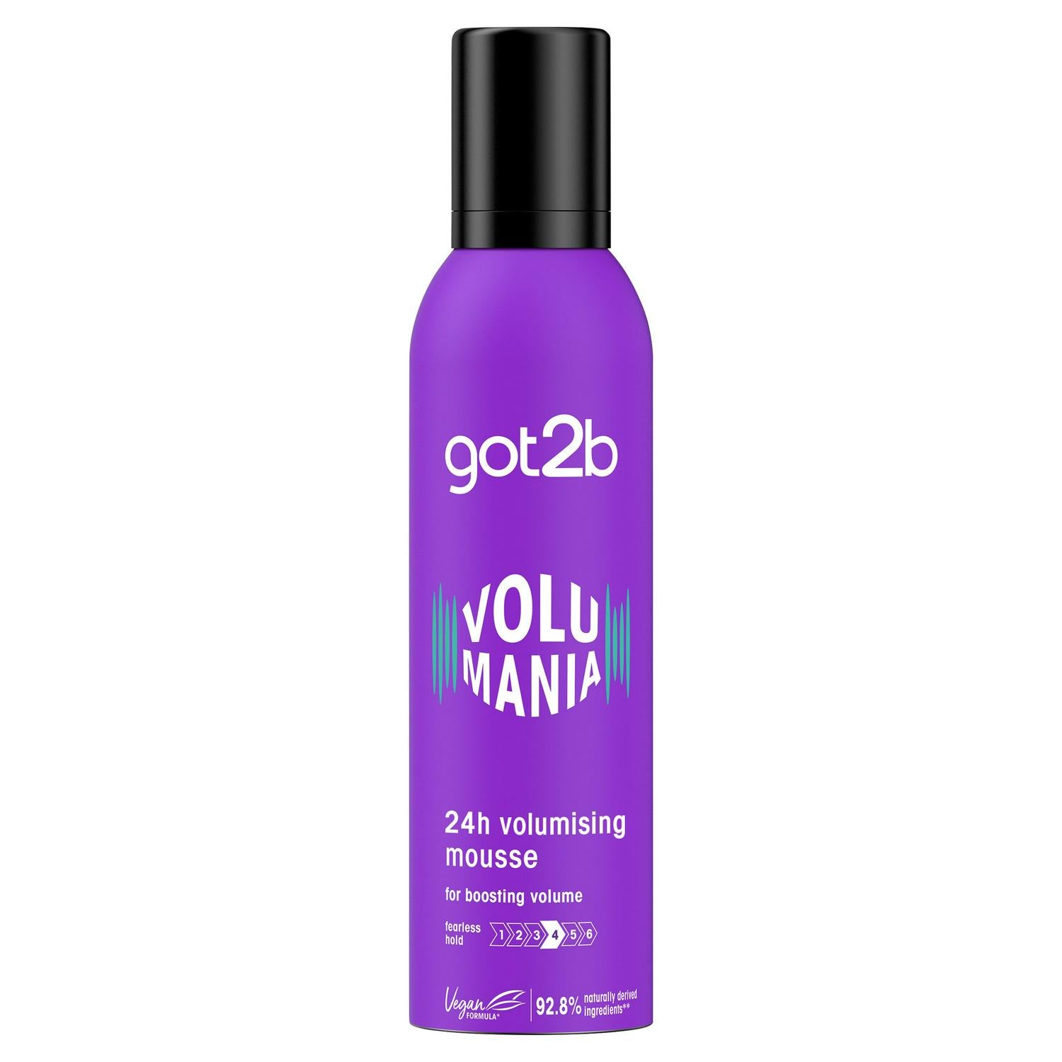 got2b Volumaniac Hair Mousse 250ml is a highly rated hair mousse designed to significantly boost hair volume from root to tip. Adding thickness and lift, it provides up to 4x more body and has a long lasting strong hold.