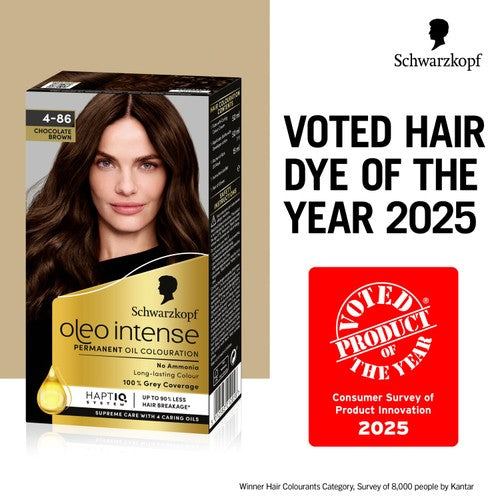 Schwarzkopf Oleo Intense provides a rich, long-lasting colour application using permanent oil coloration technology. This effective formula infuses colour pigments deeply into the hair fibre for reliable results. It achieves 100% grey coverage while remaining completely ammonia-free.
