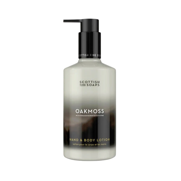 Oakmoss fragrance with woodland notes Nourishes and hydrates your skin Ethically crafted with premium ingredients Vegan-friendly Made in Scotland Immerse yourself in the rich, earthy aroma of Scottish Fine Soaps, infused with the deep, woody fragrance of Oakmoss, complemented by foraged rowan and Scots pine for a truly invigorating scent. This collection brings the essence of Scotland’s ancient woodlands to your self-care routine, wrapping your skin in refreshing hydration and a grounding, natural fragrance. Hand & Body Lotion 300ml: Feel the blanketing calm of thick forest as sunlight kisses your skin. Our Hand & Body Lotion is made with soothing allantoin and natural antioxidants Scots pine and rowan extract. Whether you are treating yourself or searching for the perfect gift, each piece offers a pampering moment with the signature, long-lasting fragrance. Vegan-friendly and made in Scotland, these products are a perfect addition to any skincare routine. Let the fresh, grounding scent of Oakmoss transport you to Scotland’s lush, misty woodlands.