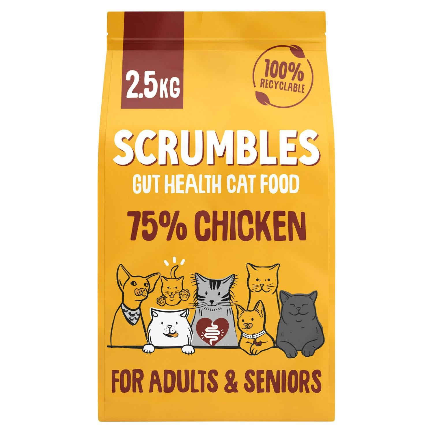This complete food from Scrumbles contains 75% chicken, specifically formulated for adult and senior cats requiring balanced nutrition. It promotes digestive wellness using natural ingredients while remaining hypoallergenic, excluding common allergens like gluten, soy, and dairy. The high meat content respects the cat's obligate carnivore diet requirements.