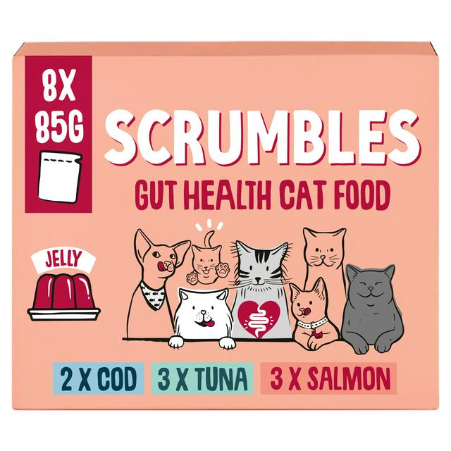 Scrumbles Jelly Gut Health Cat Food 8 x 85g delivers complete nutrition specifically formulated for adult and senior cats across all life stages. This recipe uses a limited, high-quality ingredient list, avoiding common feline allergens entirely. It is designed to thrive alone or mixed with dry kibble for consistently comfortable and happy felines.