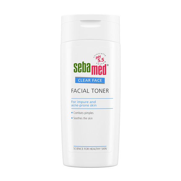 Sebamed Clear Face Facial Toner removes excess oil, sebum and dirt particles from the skin, whilst moisturising it to protect the skin from dehydration. For use on wet or dry skin, it tones and refreshes with its pH 5.5 value of healthy skin, supporting and protecting the natural barrier function of the skin's acid mantle. For oily, impure and acne-prone skin. Panthenol supports the regeneration of the skin. Allantoin smoothes the skin and makes it supple. Tones and refreshes the skin. The pH 5.5 promotes the natural barrier function of the skin's acid mantle. Prevents and combats blackheads, pimples and skin impurities and restores the skin's balance. Witch hazel soothes irritated skin and has an astringent effect to contract the pores. Formula with Hamamelis virginiana calms irritation improving the skin's appearance. Removes excessive oil, sebum and dirt particles from the skin and disinfects it with alcohol. Cucumber extract and hydrolyzed silk provide moisture to protect the skin against dehydration. Dermatologically and clinically tested.