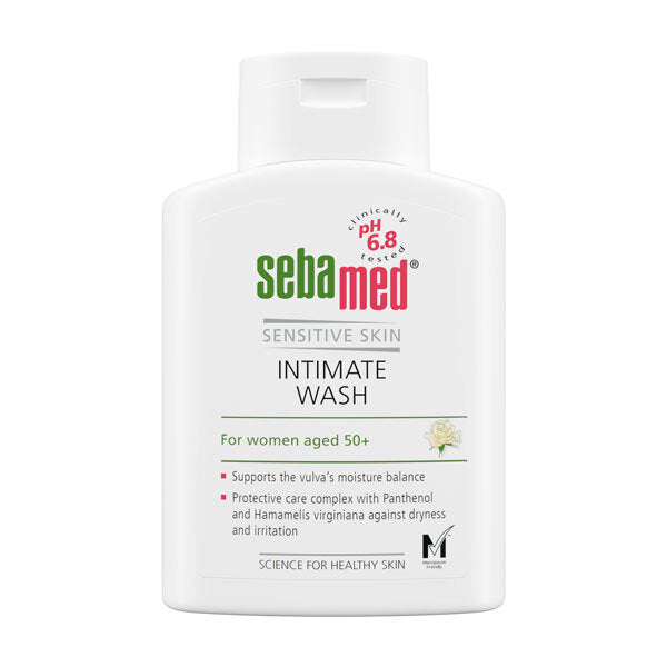 two stages in a womans lifes two solutions when a young woman starts to menstruate the hormone level of estrogen starts to rise in the female body and the ph level of the genitals starts to go down to a more acidic ph value of 38 this ph value is balancing the micro flora to protect the vagina especially during pregnancy this protection lasts throughout the fertile years during and after menopause the phlevel increases to 68 due to the reduction of estrogen levels risk factors in the intimate area include dehydration external irritants harmful microorganisms allergic reactions helps to protect against dryness and irritation reliable feminine hygiene for women aged 50 for daily intimate care protective care complex with panthenol and hamamelis virginiana against dryness and irritation the ph 68 formula maintains and supports the vulvas moisture balance dermatologically gynecologically and clinically tested
