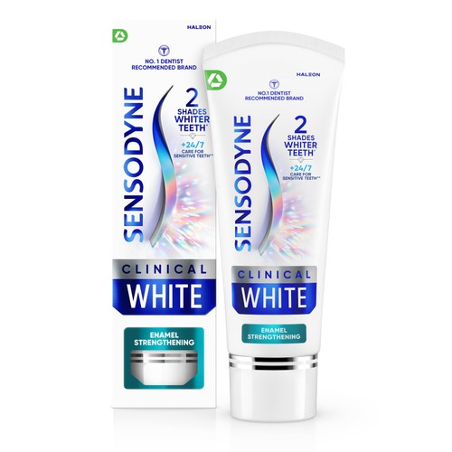 Read MoreSensodyne Clinical White Enamel Strengthening Toothpaste whitens teeth and strengthens enamel Sensodyne Clinical White Enamel Strengthening is a Whitening Toothpaste with the Most Advanced Whitening Technology. It contains Clinically Proven teeth whitening ingredients that help to prevent future stains and polish teeth for 2 shades whiter compared to regular toothpaste*. Sensodyne Clinical White Enamel Strengthening has all the benefits of a regular toothpaste with a gentle formula that provides 24/7 care for Sensitive Teeth* with a Minty Fresh flavour. Sensodyne Clinical White Enamel Strengthening Toothpaste comes in fully recyclable packaging, also available in a Stain Protector variant. *after 8 weeks twice daily brushing