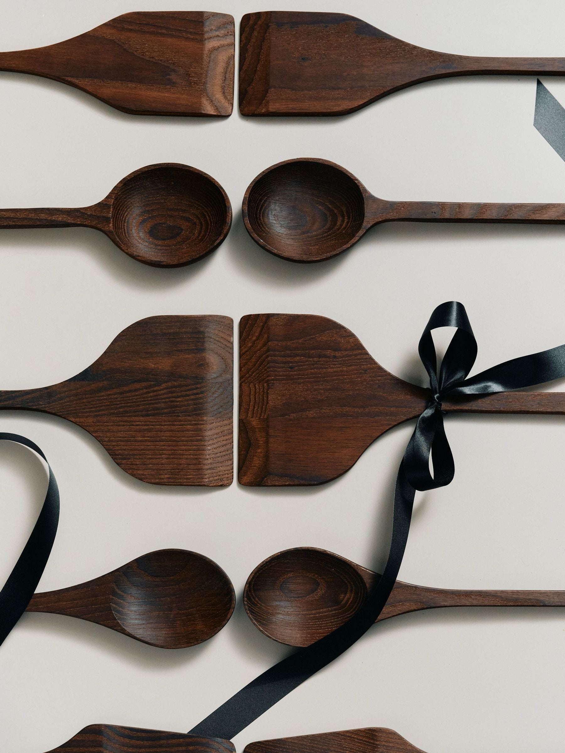 Wooden spoons and spatulas that, thanks to the innovative design and look, go from the kitchen to the table to serve the dishes ready in the elegant pots and pans. Size: ONE.