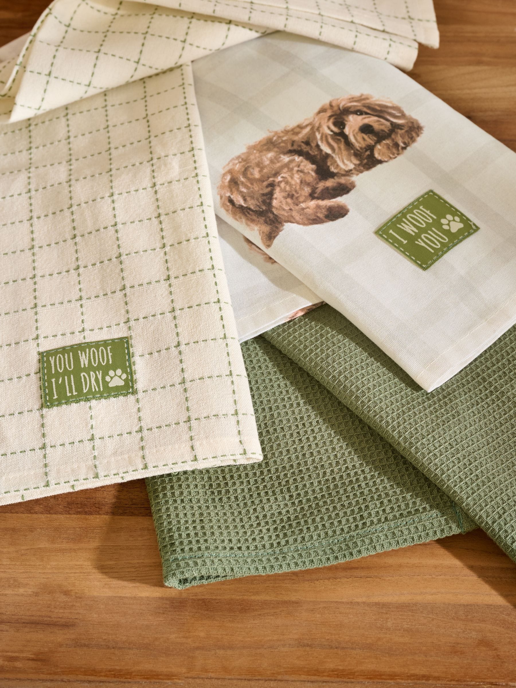 Adorable and functional, this set of 3 tea towels feature our lovely Louie the Labradoodle and are woven from absorbant cotton. The pack contains a cute all over print, a soft woven check and a super absorbant waffle.