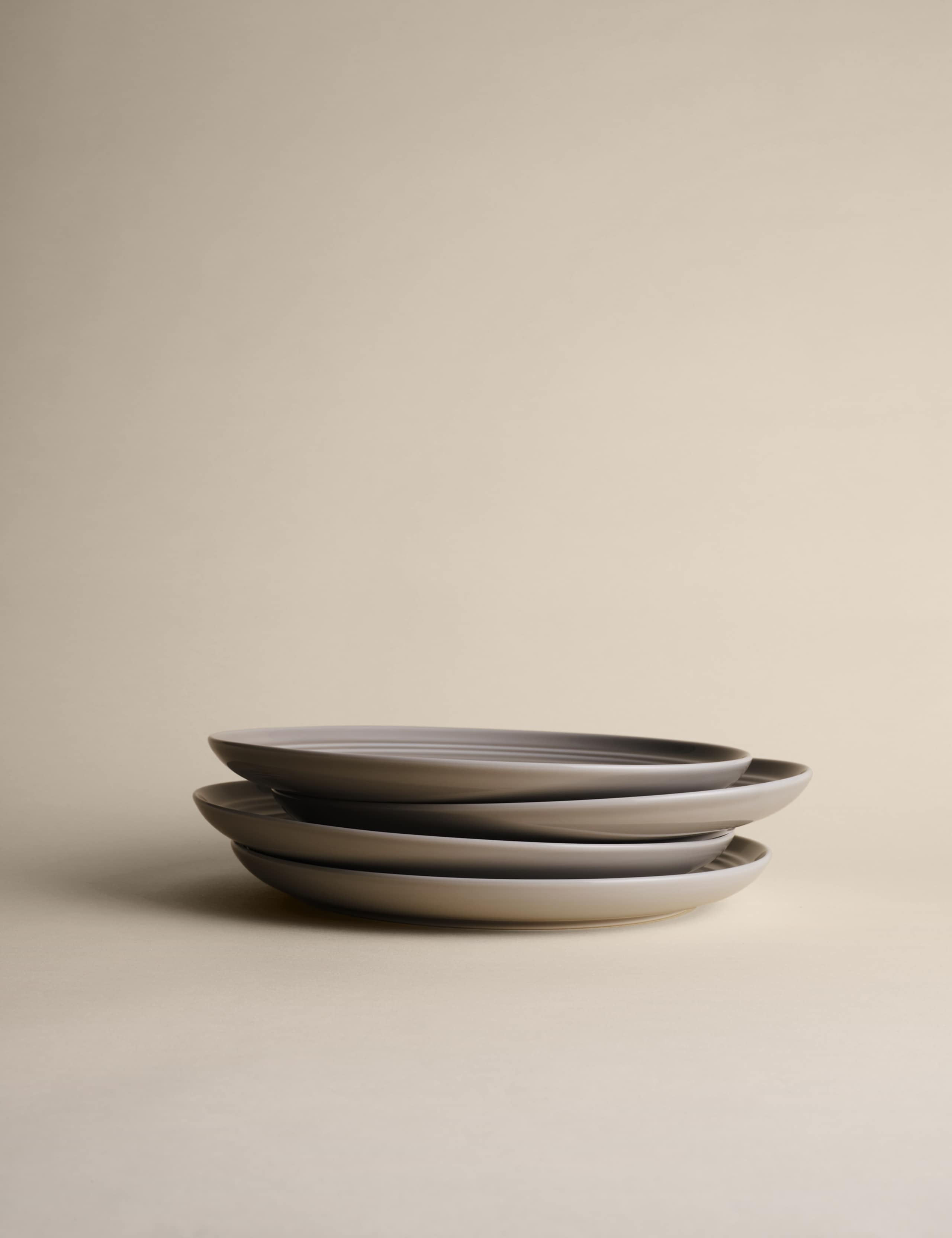 These Marlowe dinner plates combine a modern visual style with practical detailing for everyday use. They present a smooth, glossy surface complemented by slender ribbing along the circumference for visual interest. This durable set of four is engineered for convenience and resilience in the modern home.