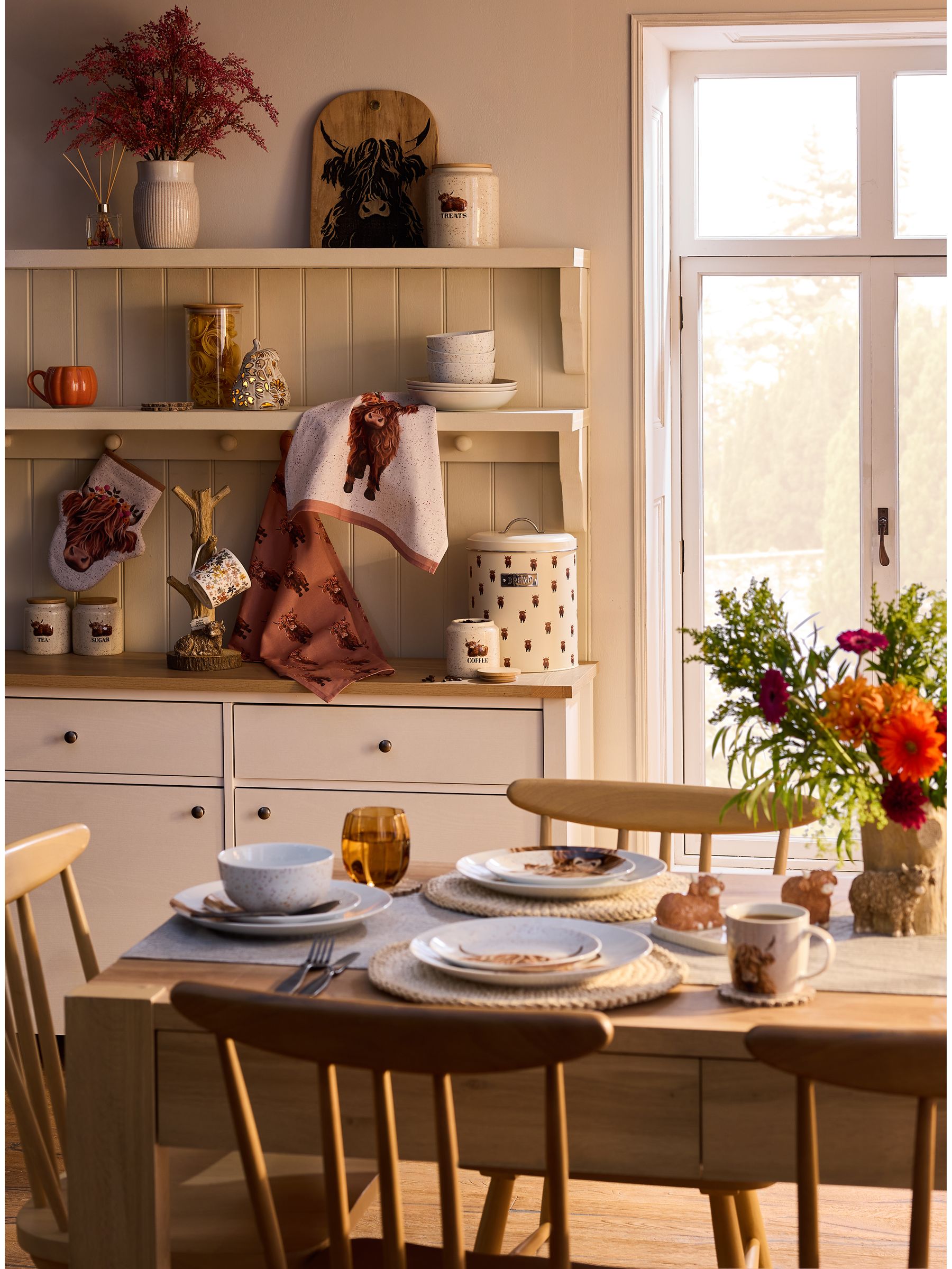 This set of 4 pasta bowls are made from a crisp porcelain, featuring a natural Hamish the Highland Cow design, perfect for pasta.