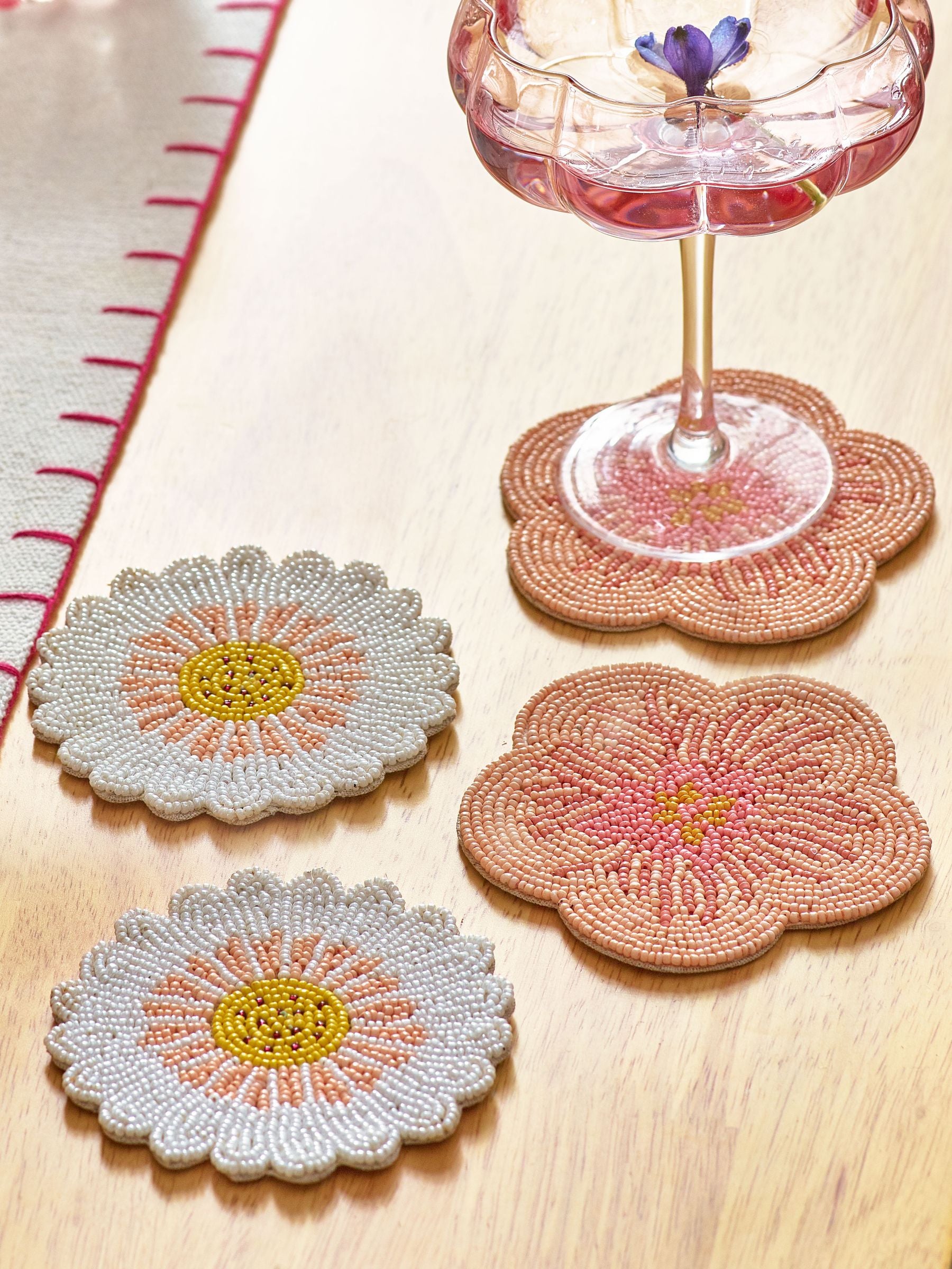 This set of 4 beaded coasters are a great way to add some fun to your living or dining room.