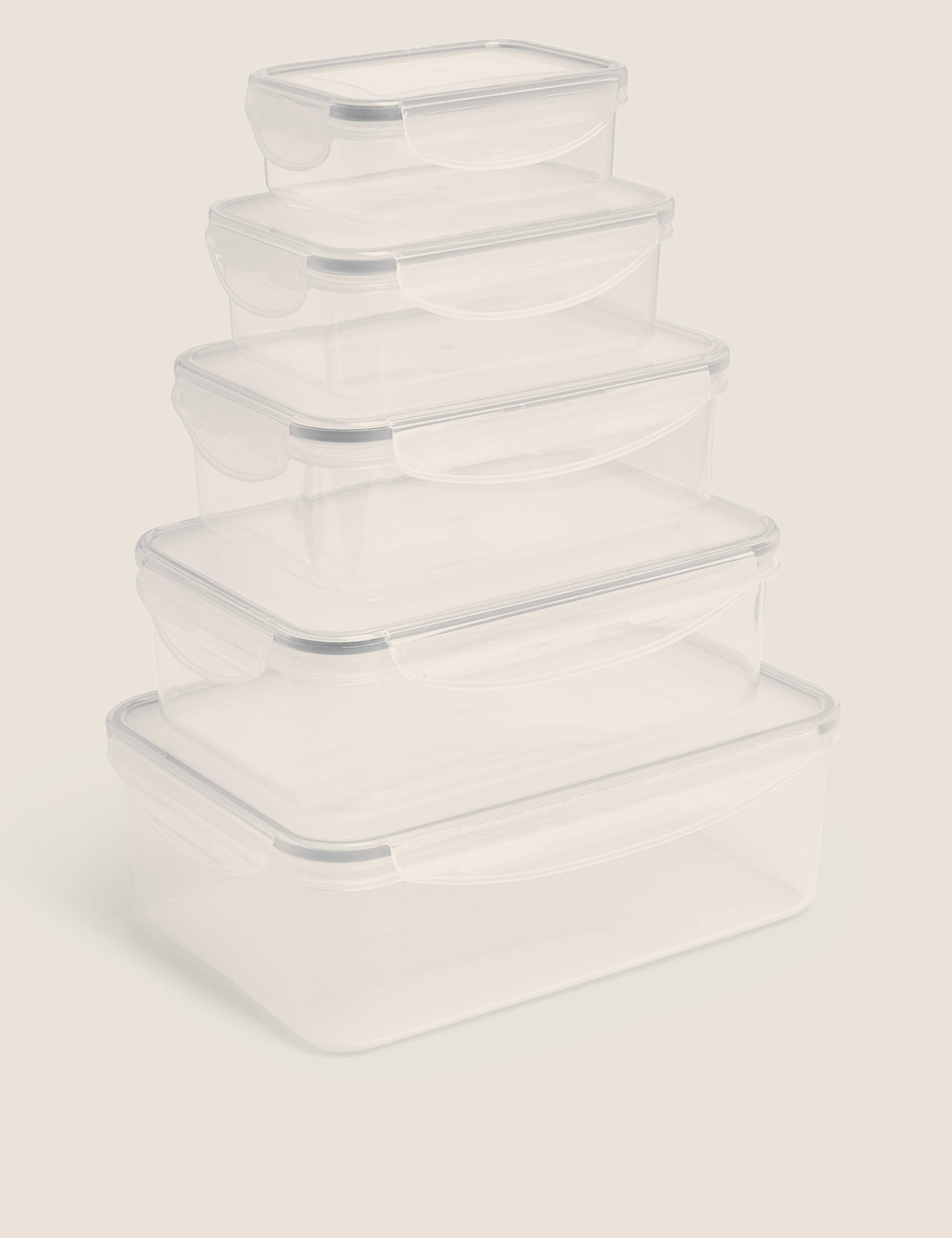 • This is a comprehensive set including five different-sized plastic tubs.