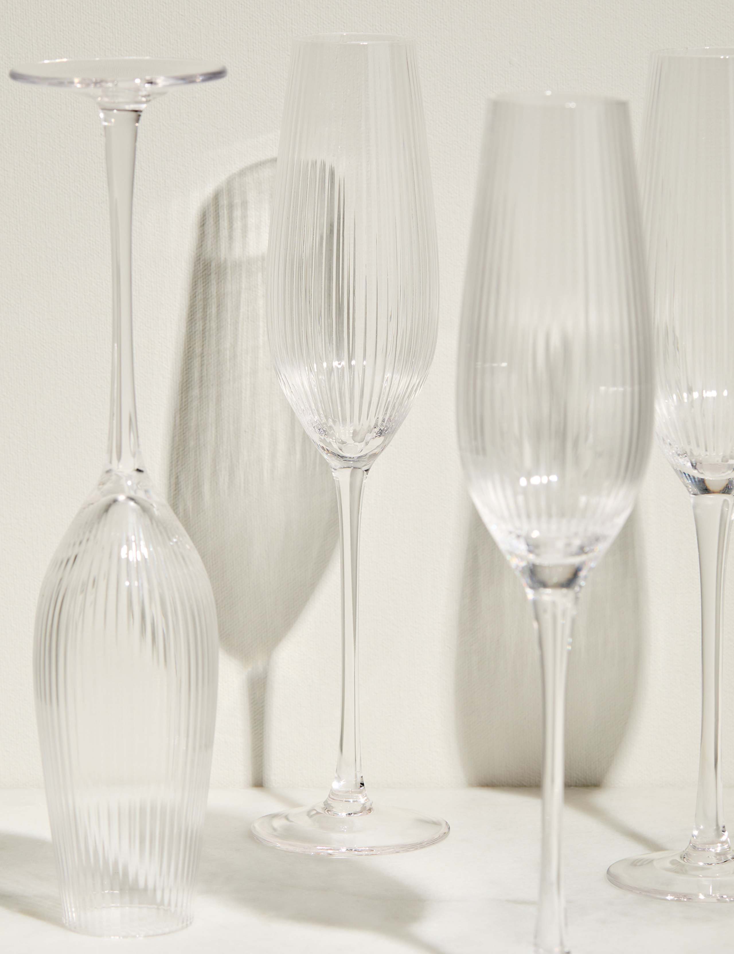 Read MoreRaise a toast to special moments with this set of six champagne flutes. They're crafted from transparent glass, with a stylish ribbed design and a slender stem for an elevated look and feel. These glasses are dishwasher-safe for easy cleaning.