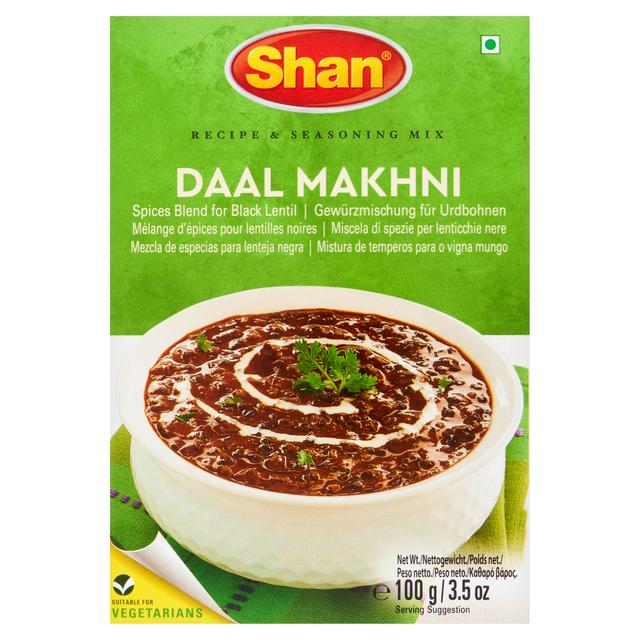 Shan Daal Makhni Recipe Seasoning Mix offers a pre-measured spice blend designed to simplify the preparation of authentic black lentil dishes at home. This established recipe features natural freshness maintained through advanced cryogenic grinding and V-Lock technology. The product is certified suitable for vegetarians and carries official Halal certification from Pakistan.