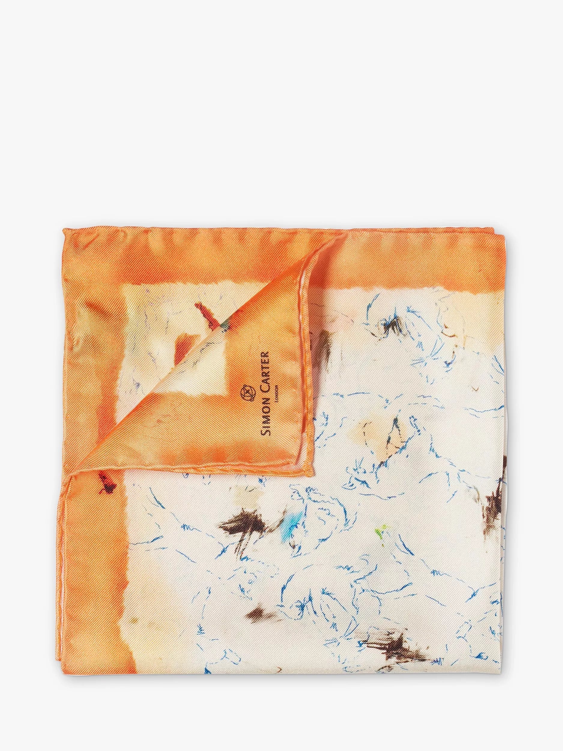 Simon Carter Silk Cat Pocket Square - Orange, 13"