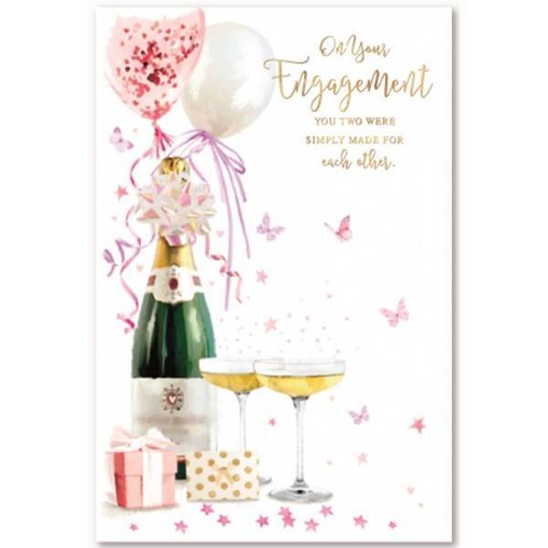 material card design balloon butterfly champagne bottle glasses text traditional contents 6 envelope occasion engagement