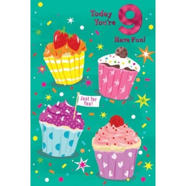 material card design confetti contrast border cupcake number stars text contents 6 envelopes occasion 9th birthday